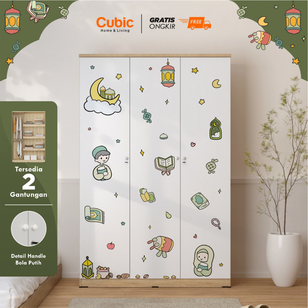[EDISI RAMADHAN] Cubic Lemari Pakaian Bergambar / Lemari Baju 3 Pintu / LUNA LP 3P R