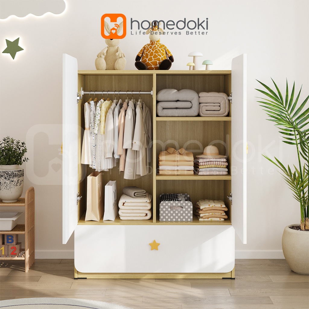 Homedoki Lemari Pakaian/Lemari Kayu/Lemari Kayu Minimalis/Lemari Pakaian 2 Pintu/Lemari Baju Aesthetic