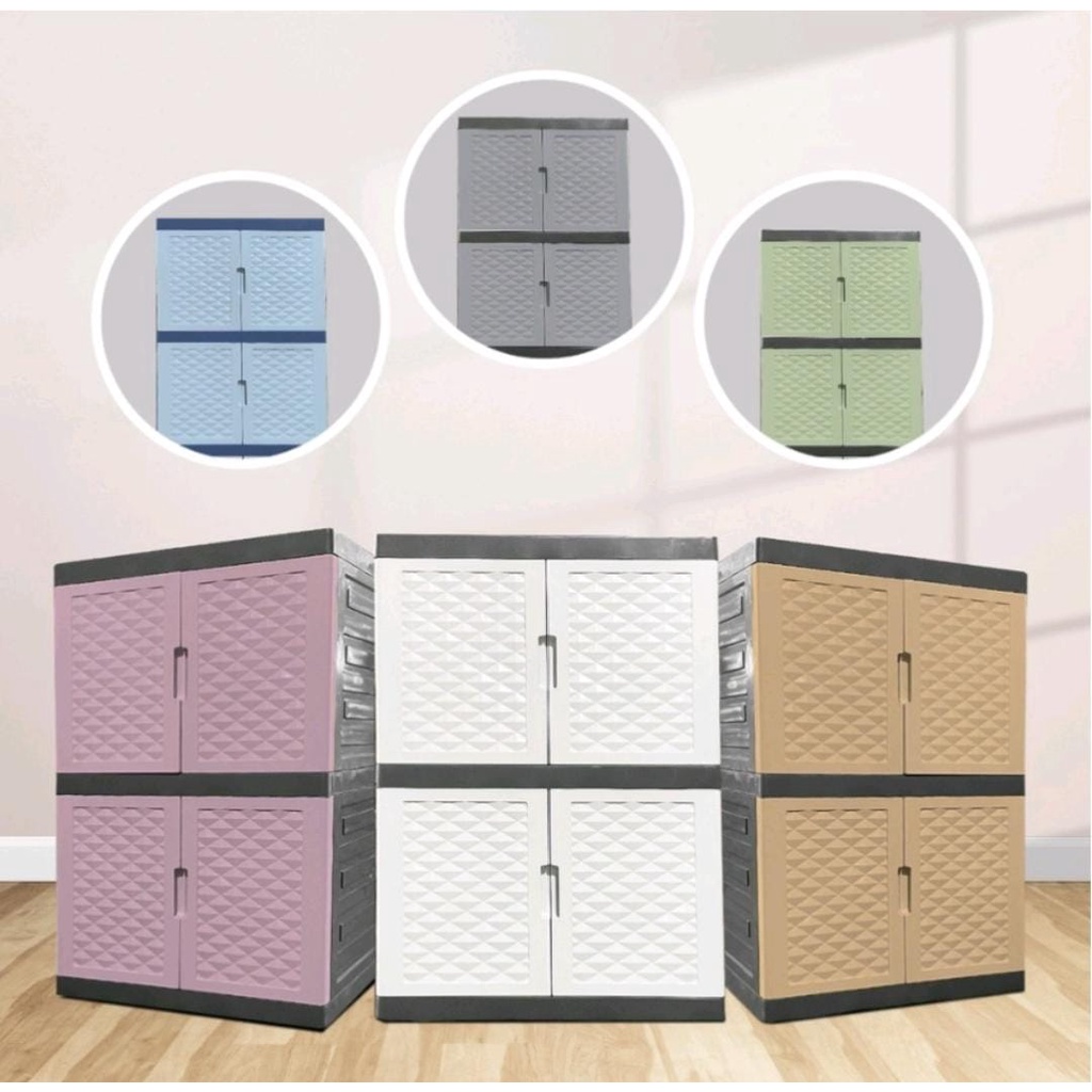 LEMARI PLASTIK LEMARI PAKAIAN LEMARI BAJU LEMARI BUKU SSN 2 KACA = KUNCI