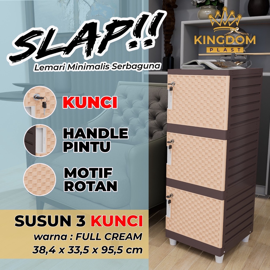 Lemari Plastik Pakaian Serbaguna Minimalis / Lemari Penyimpanan Mainan Kingdom-FULL KUNCI