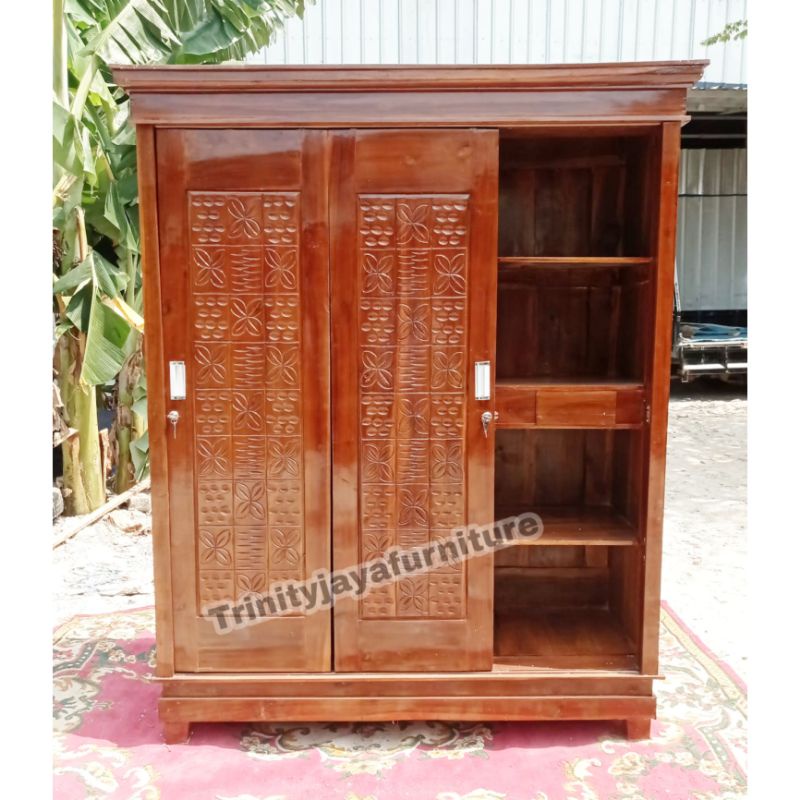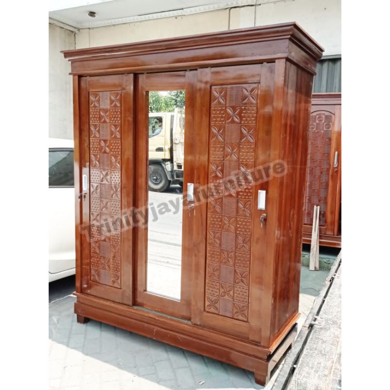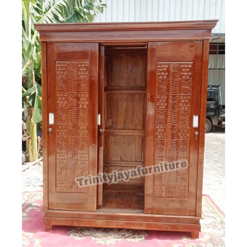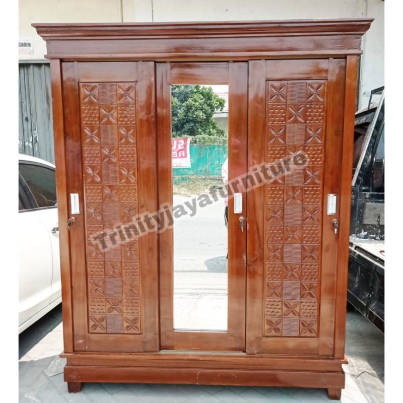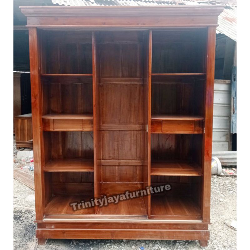 lemari Pakaian Jati Sliding 3pintu 2 Rak