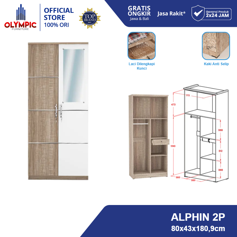 Olympic Lemari Kayu Dua Pintu / Lemari Pakaian Dua Pintu / ALPHIN 2P