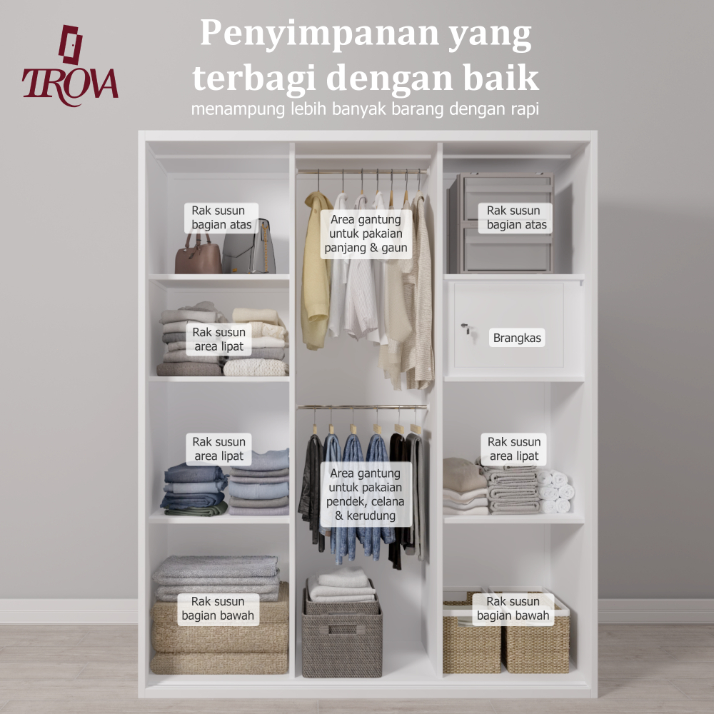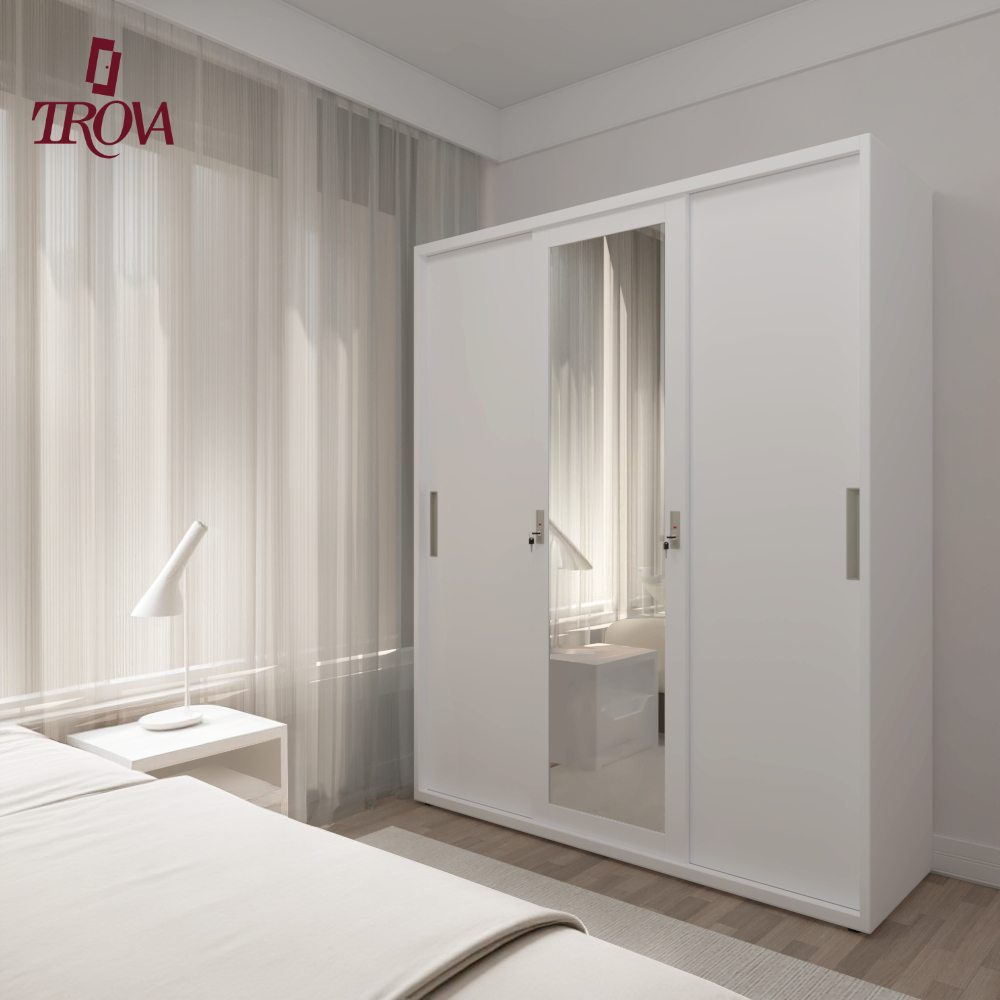 Trova Official Lemari Pakaian Besi Sliding 3 Pintu 2 hanger 150cm - Lemari Pakaian Modern Minimalis