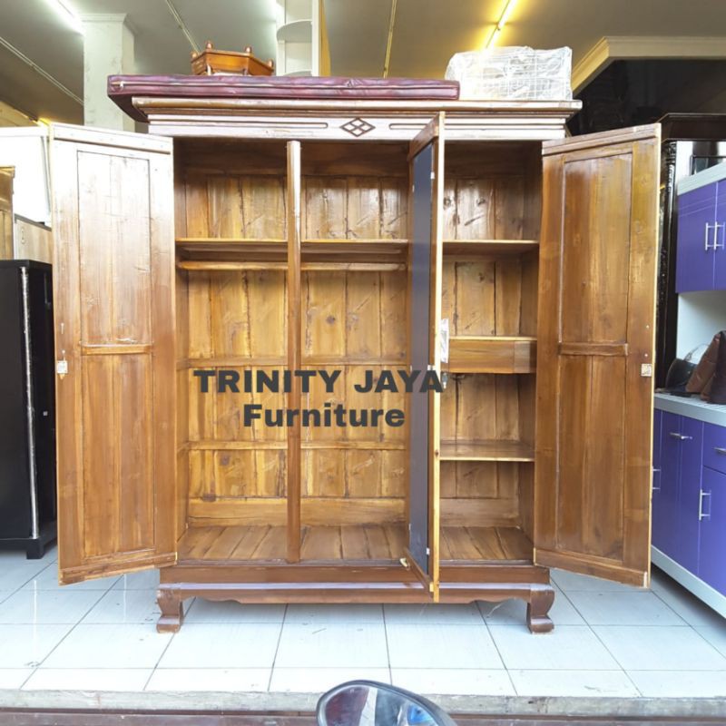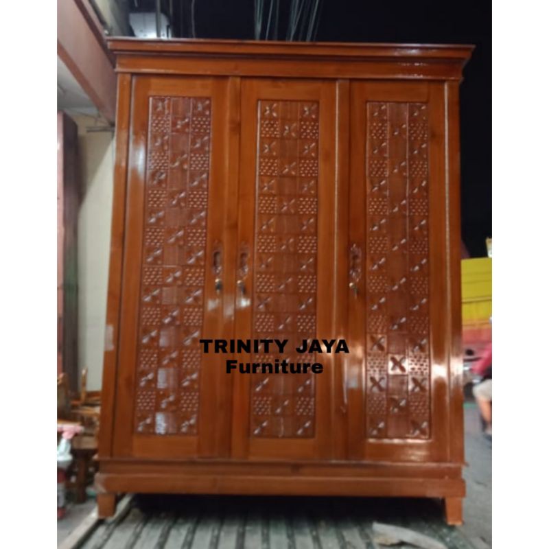 Lemari Pakaian Kayu Jati Minimalis 3Pintu/trinityjayafurniture