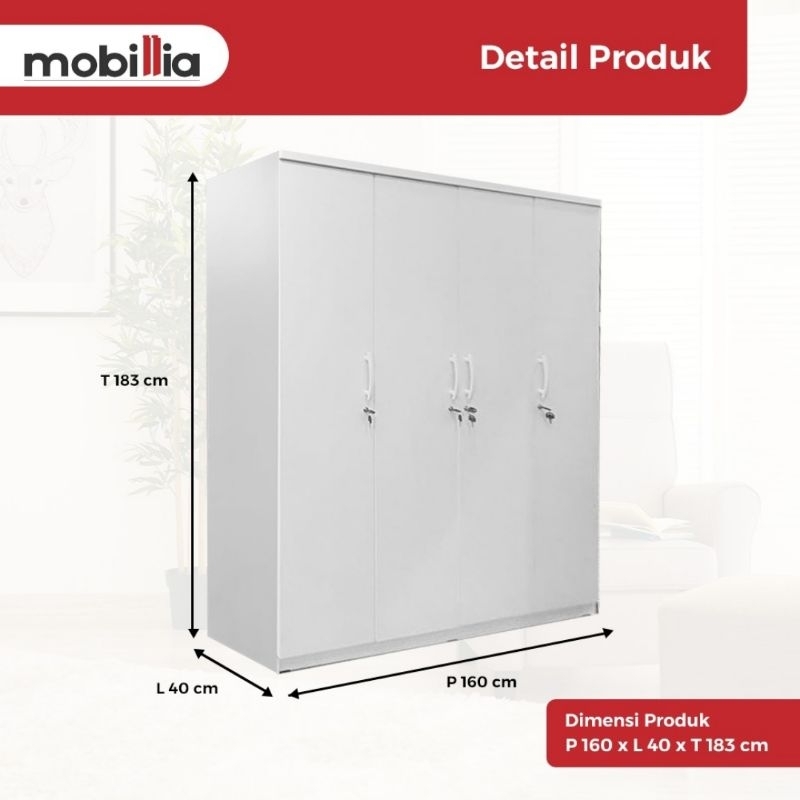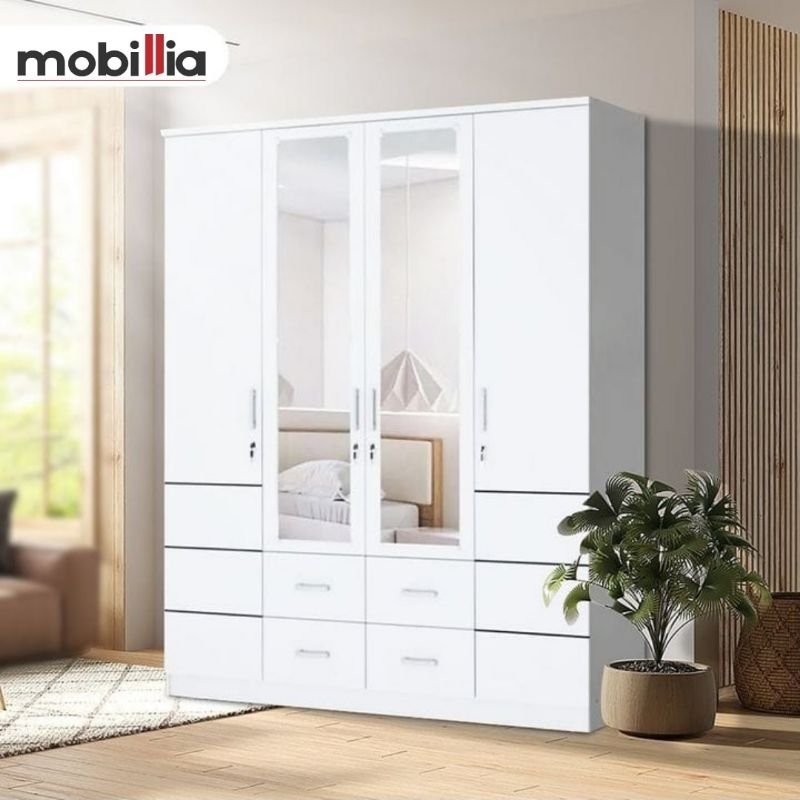 lemari pakaian 4 pintu putih modern minimalis 2 cermin 4 laci penyimpan