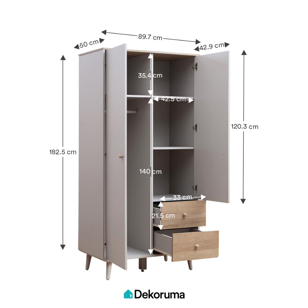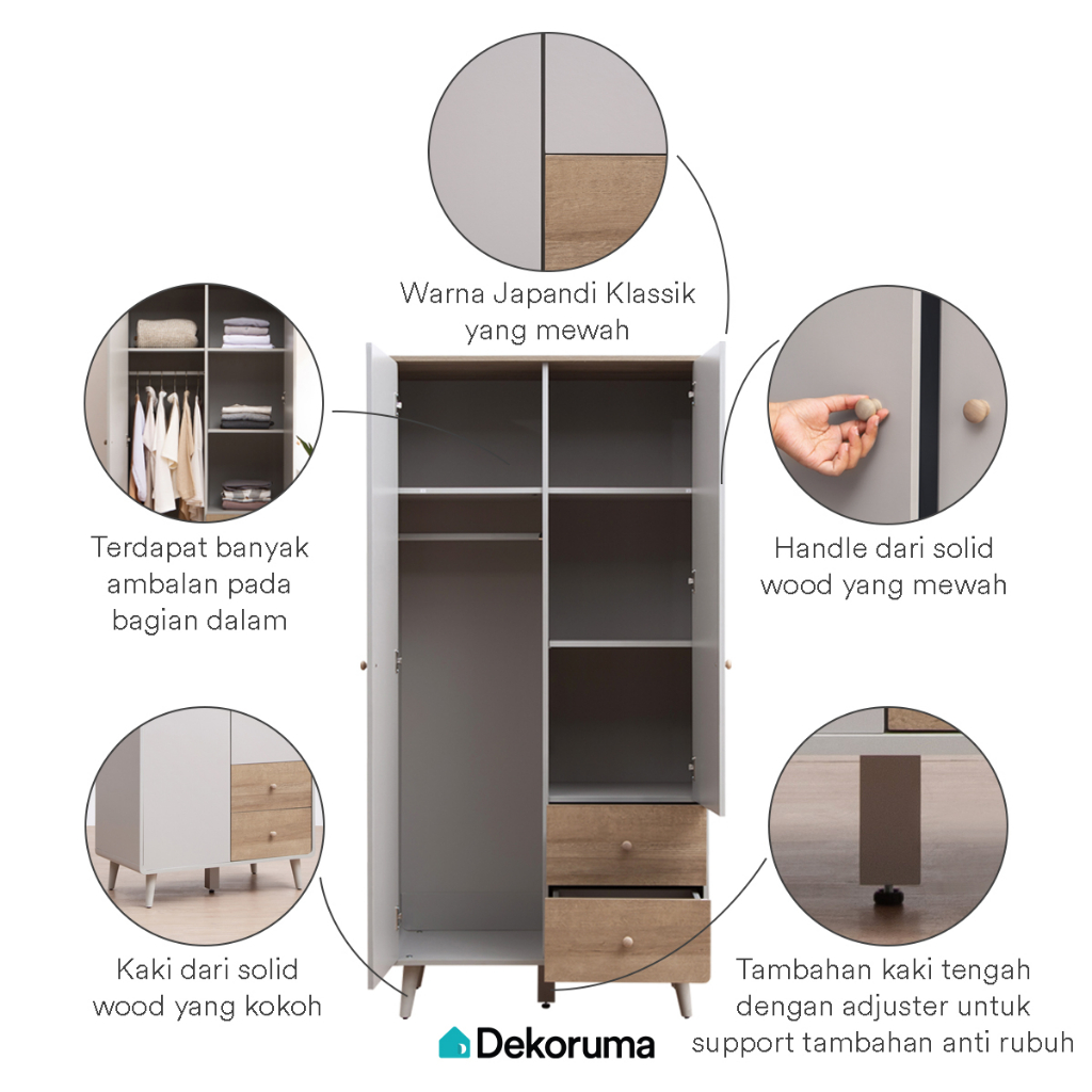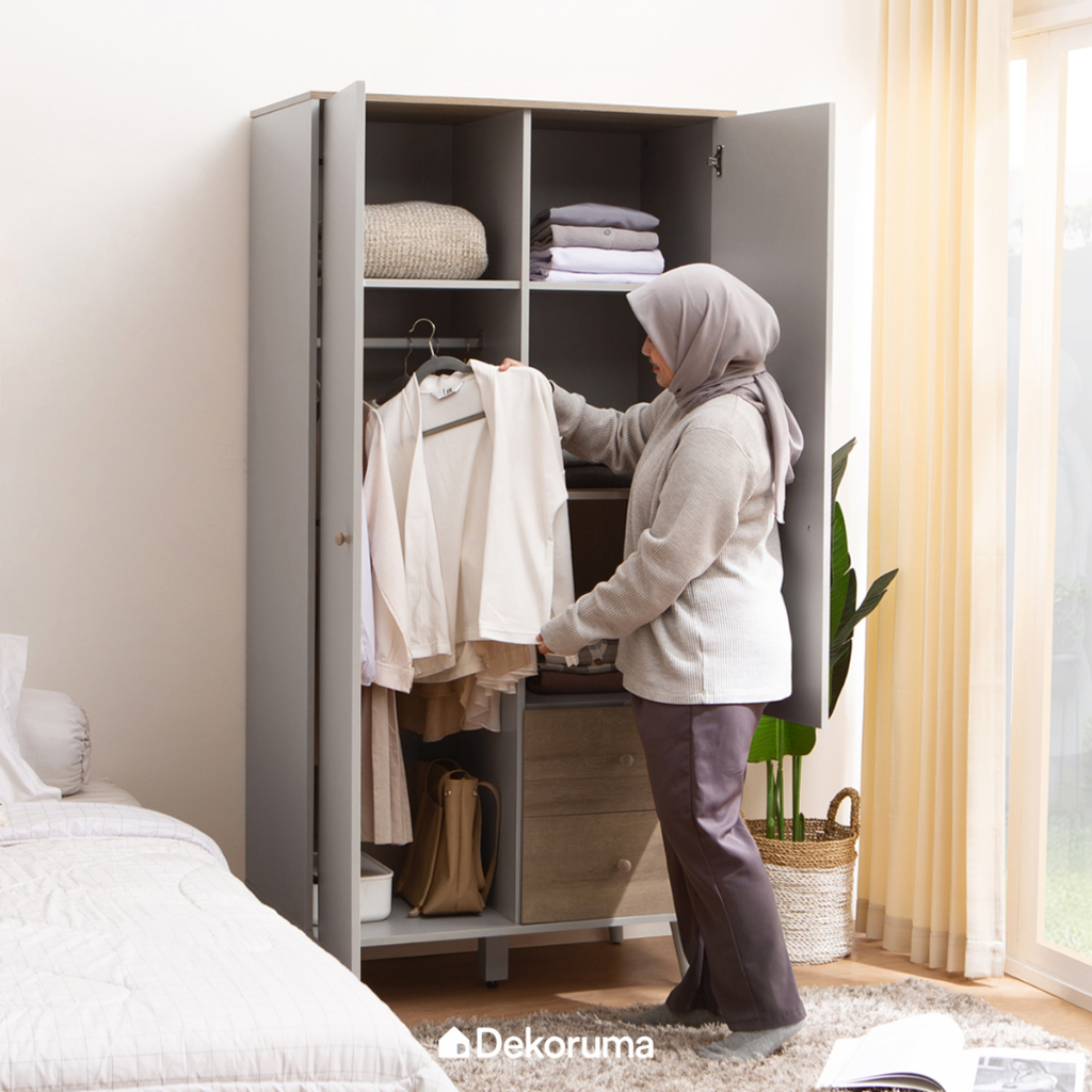 Dekoruma MORI Lemari Pakaian Kayu 2 Pintu - Wardrobe Minimalis