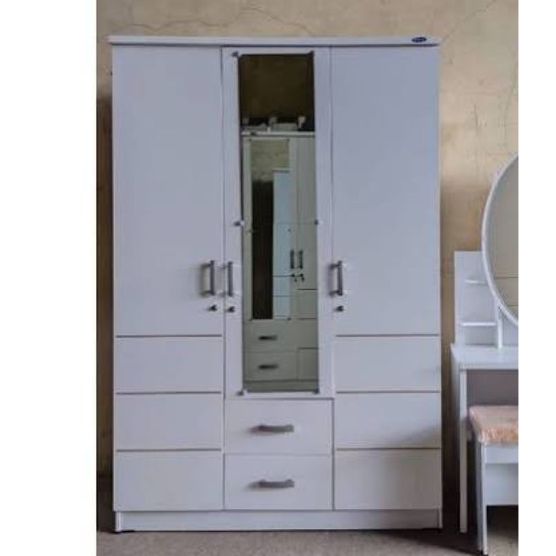 lemari pakaian 3 pintu banyak rak putih llbp