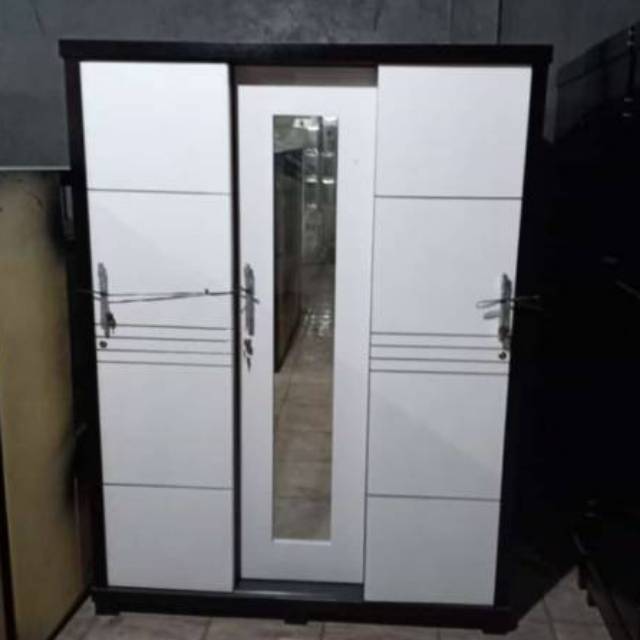 SALE BESAR!!!!!Lemari 3 pintu sliding ekonomi bagian tengah buka tutup multiplek (JABODETABEK)
