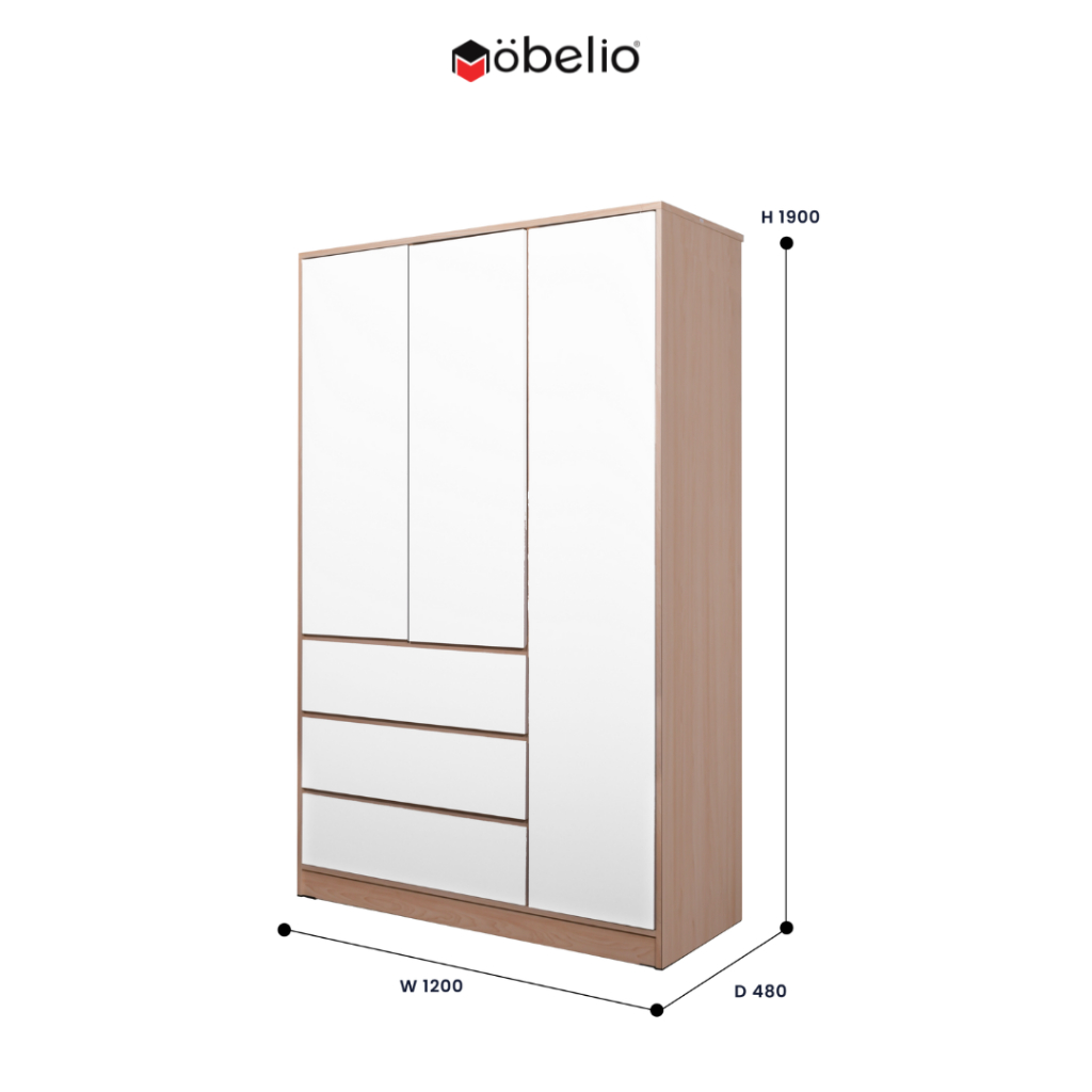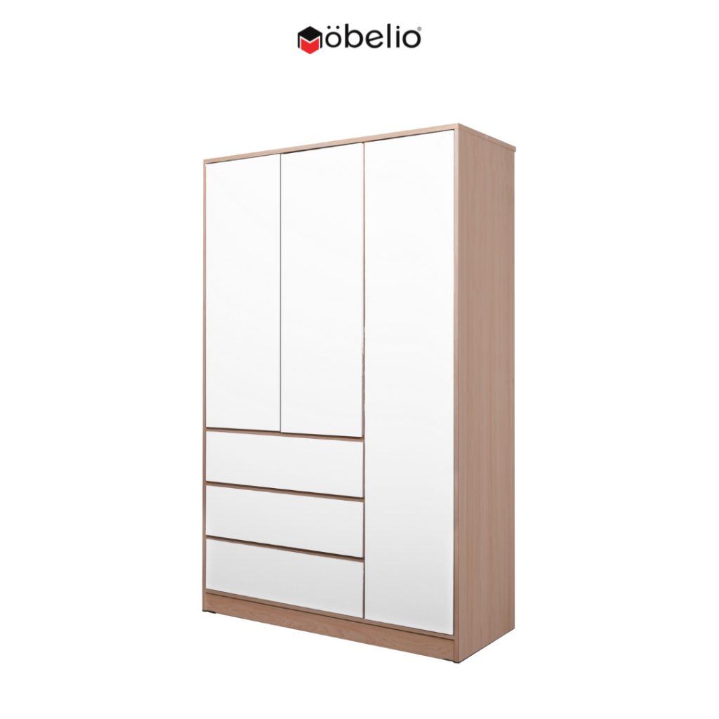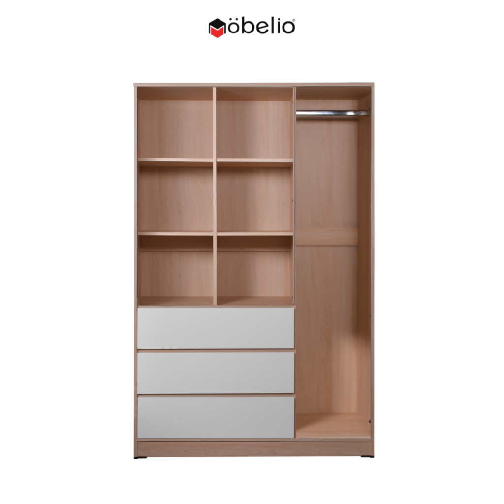 MOBELIO - Lemari Pakaian 2 dan 3 Pintu Minimalis Japandi Modern dengan Laci Putih Natural - GARVIN