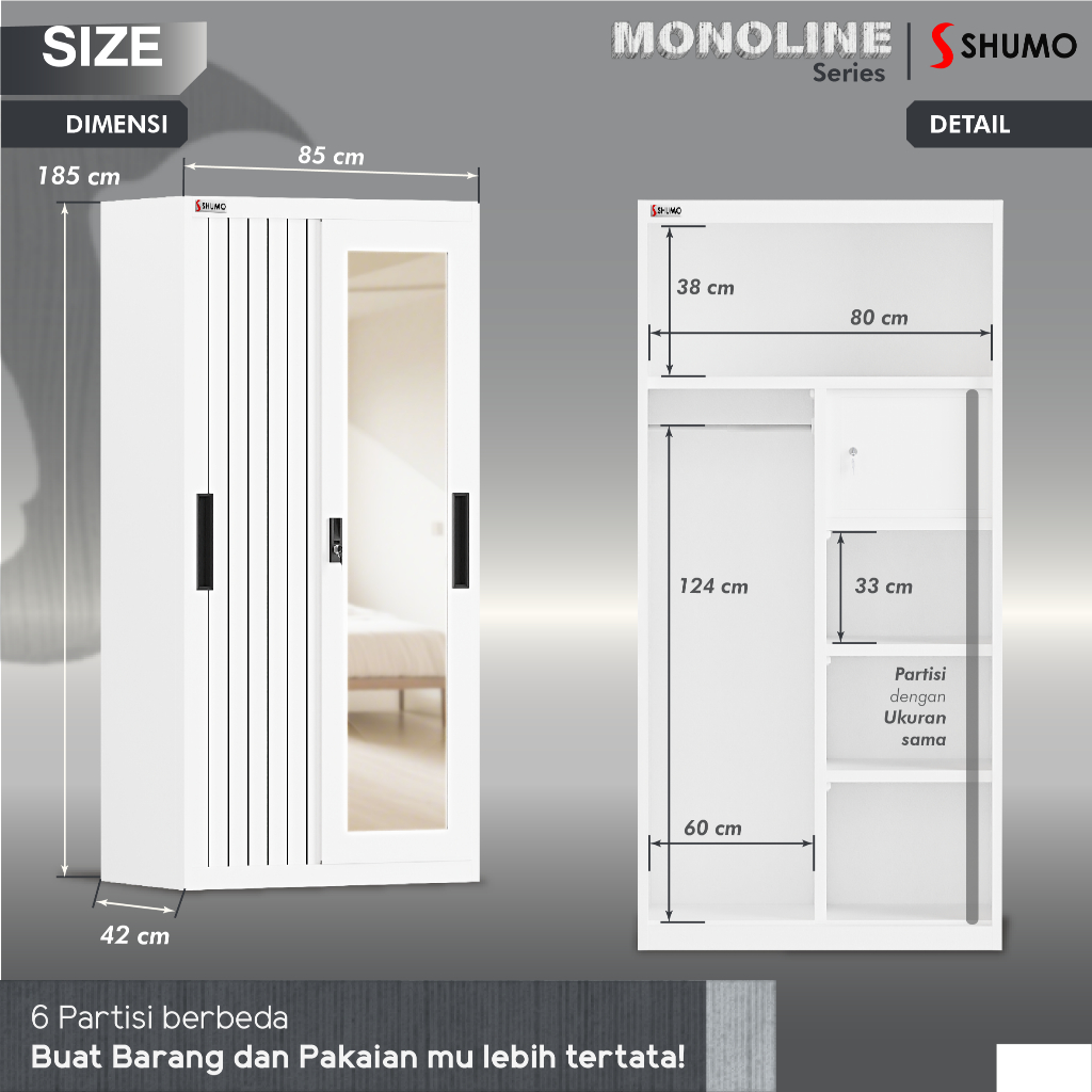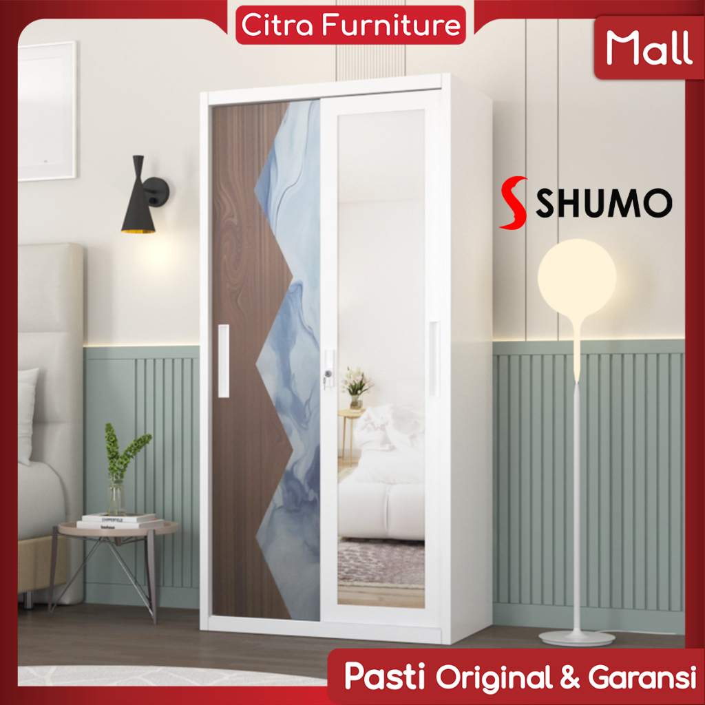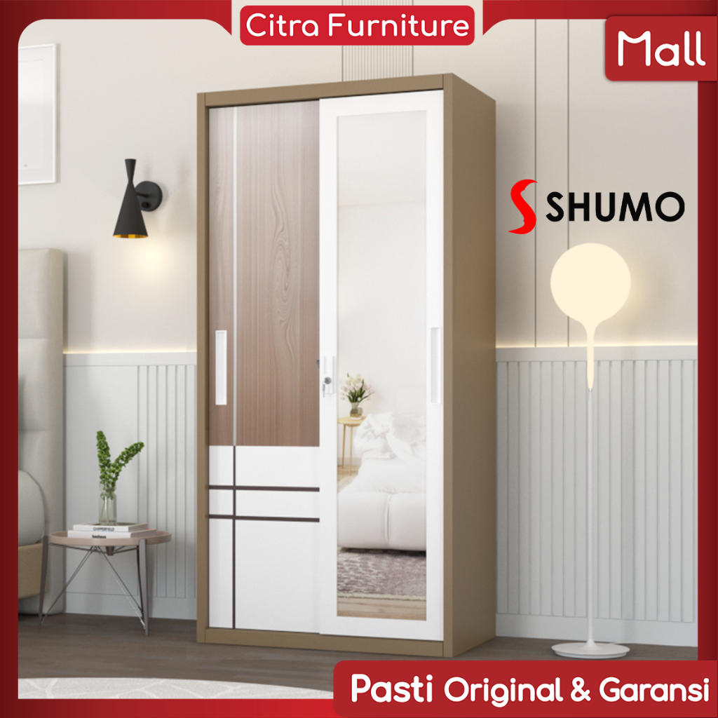 Citra Furniture SHUMO ® Lemari Pakaian 2 Pintu Besi Sliding Cermin | Lemari Baju Sleding Besi CTR1