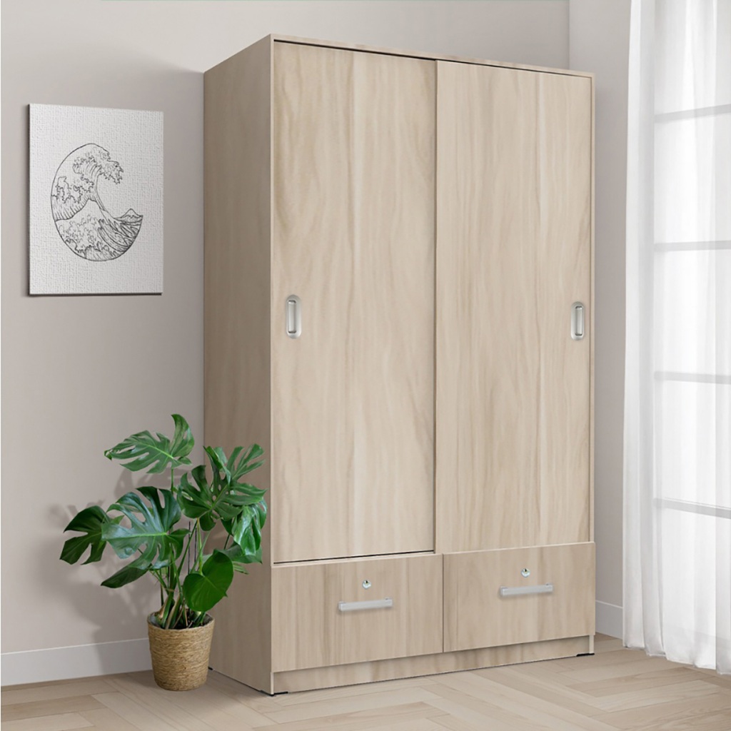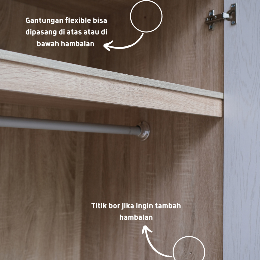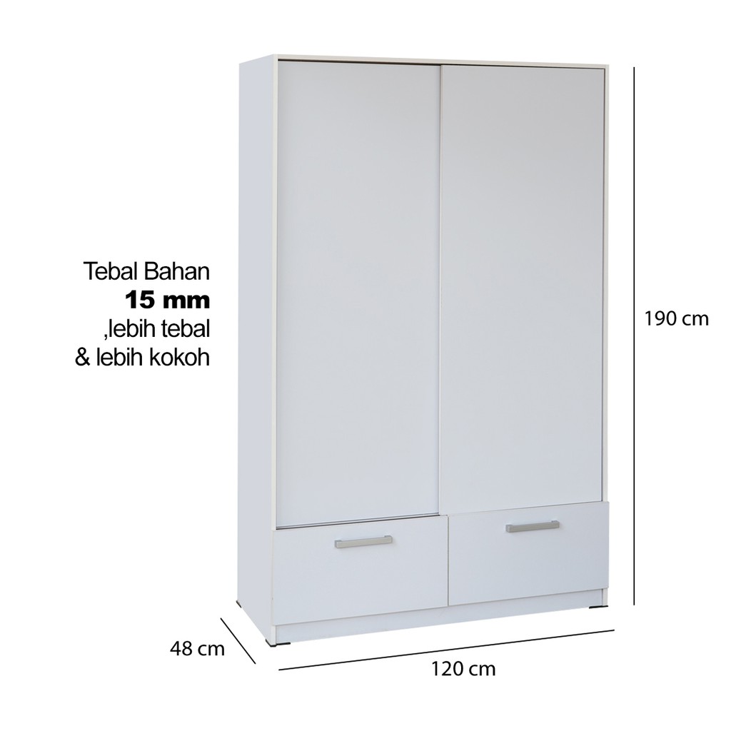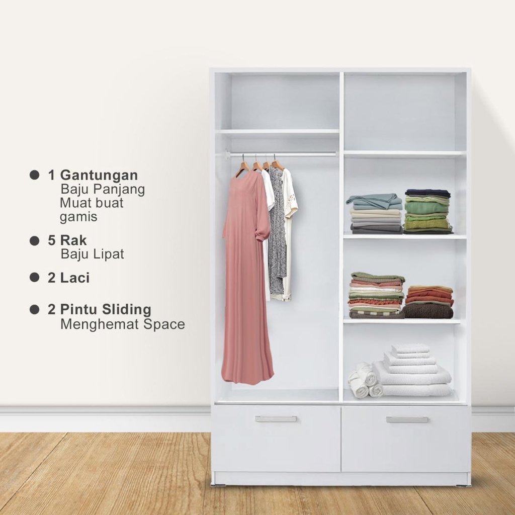 KIRANA Omaha - Lemari Pakaian Kayu 2 Pintu Sliding / Geser Wardrobe Putih Modern Minimalis