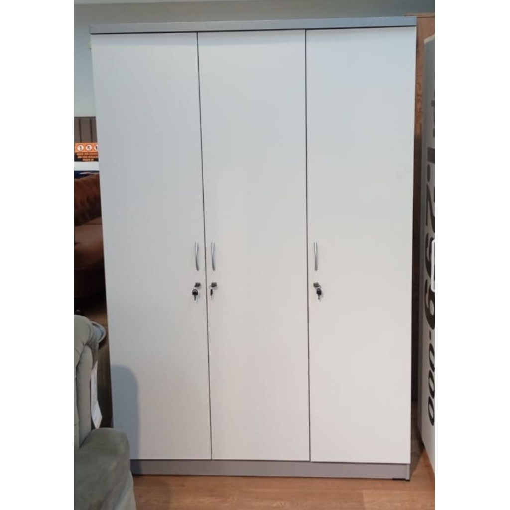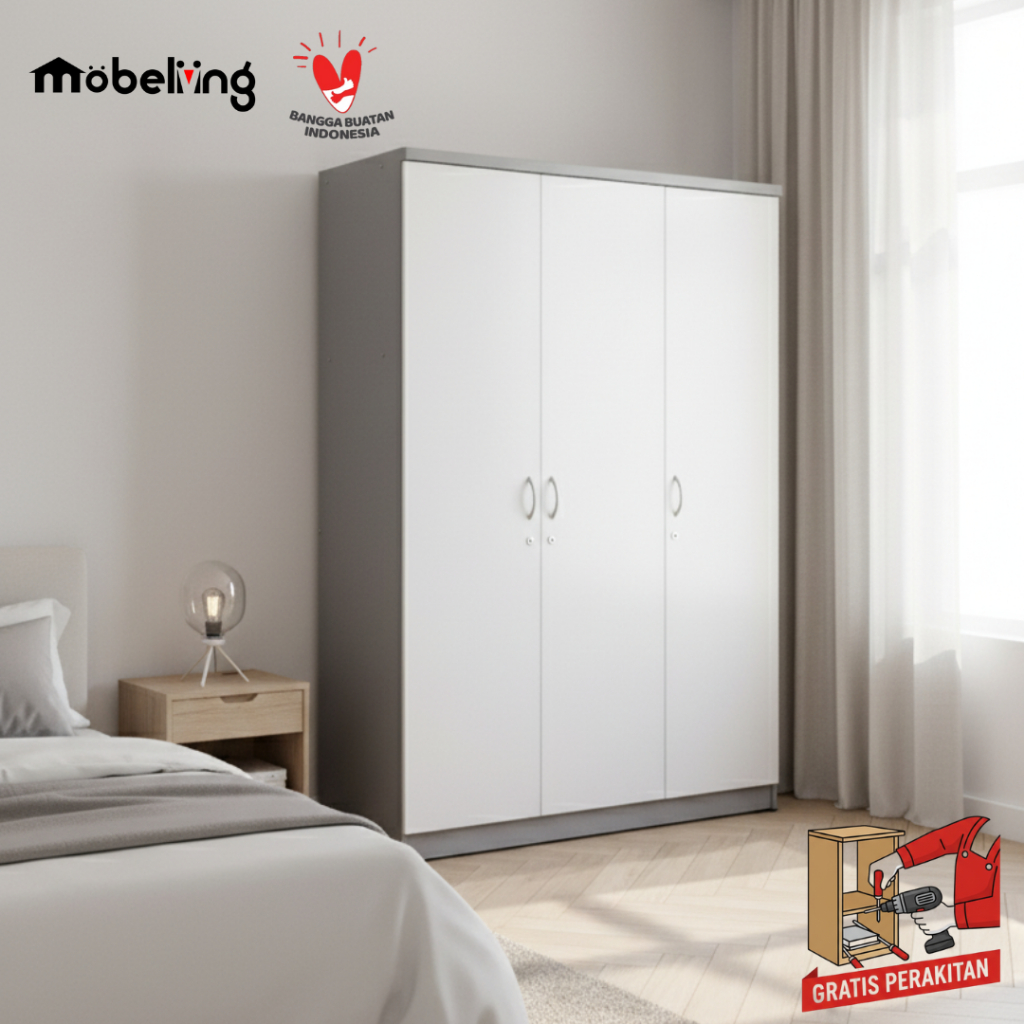 Mobeliving - Lemari Murah 3 Pintu Putih Body Grey LPB 261117