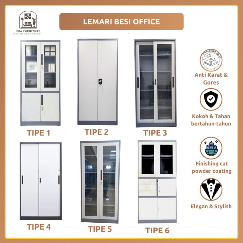 Era Furniture - Lemari Besi Kombinasi Kaca Lemari Kantor Kabinet Tempat Dokumen Arsip Berkas Document Storage Furniture