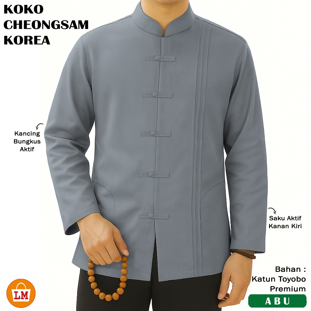 MA KOKO CHEONGSAM KOREA - Baju Koko Pria Muslim Lengan Panjang Bahan Kain Katun Toyobo Premium 38469 Bahan Lembut Adem, Kancing dan Saku Aktif Koko Dewasa