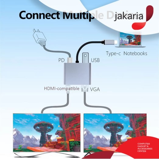 ILLUPRO Docking Station Converter Type C 4 in 1 USB C to HDMI-VGA-USB 3.0-Type C Cging