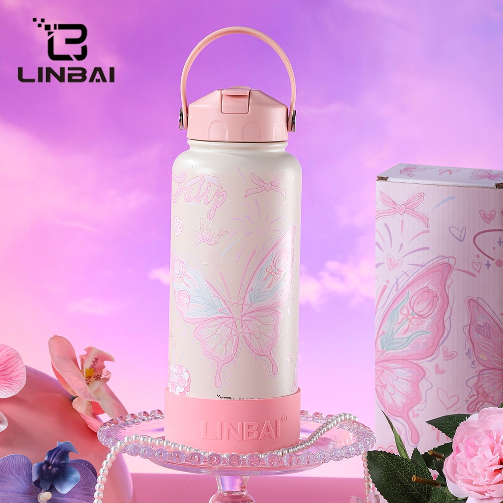 LINBAI Flask 32oz Printing Stainless Steel Water Bottle With Straw And Boot Tumbler Hot And Cold Vacuum ORIGINAL