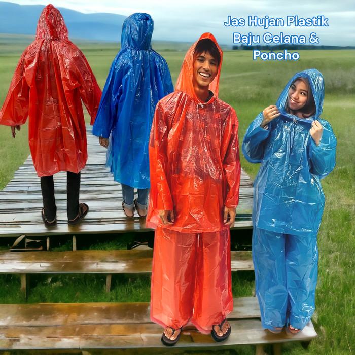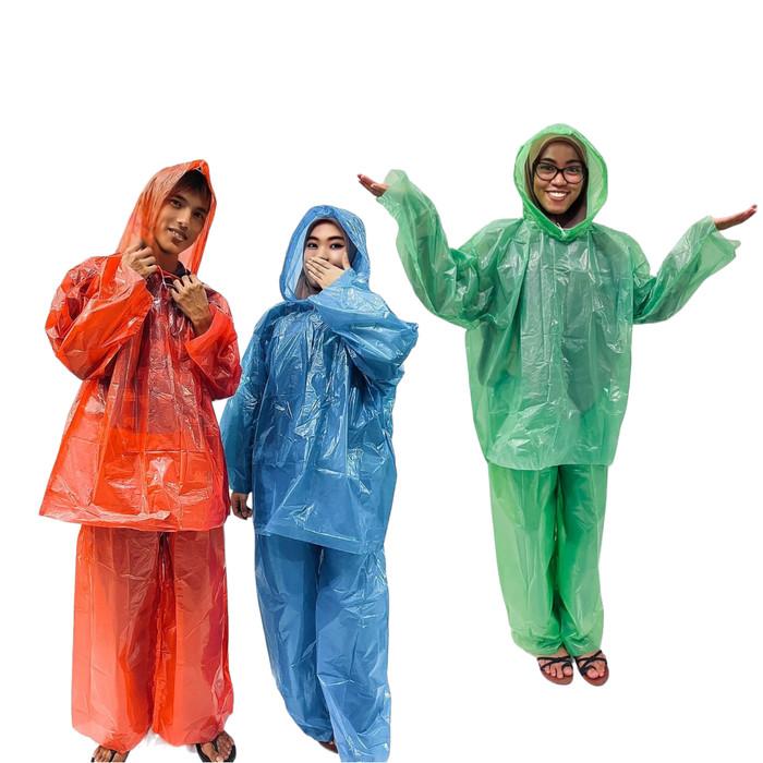 Mantel Mantol Jas Hujan Model Baju Celana Ponco Poncho Plastik Dewasa Sekali Pakai Murah Hdpe Alot - Poncho