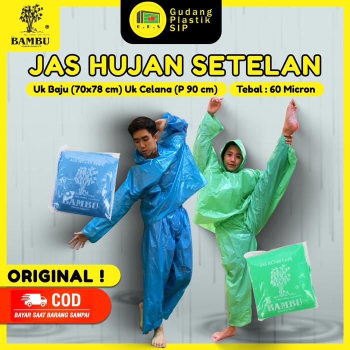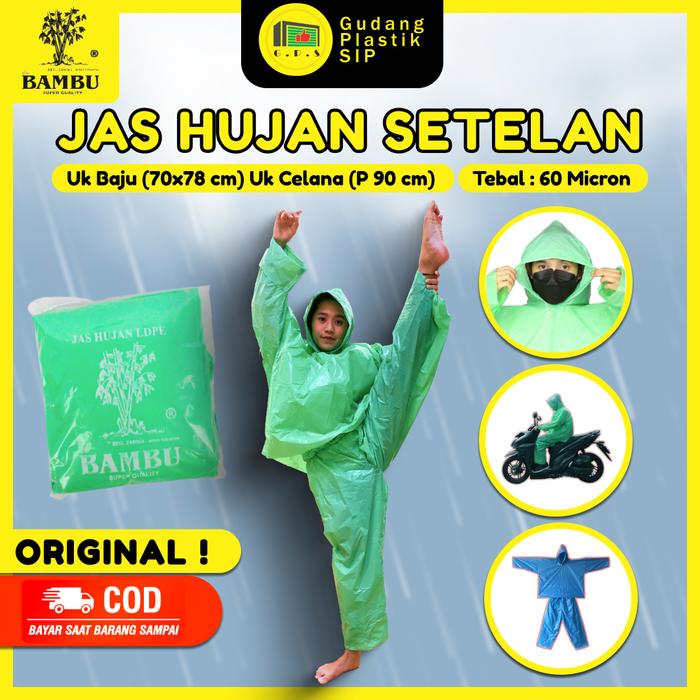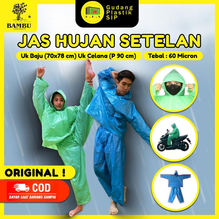 Jas Hujan Plastik Ldpe Jaket Celana Setelan Bambu Tebal Murah