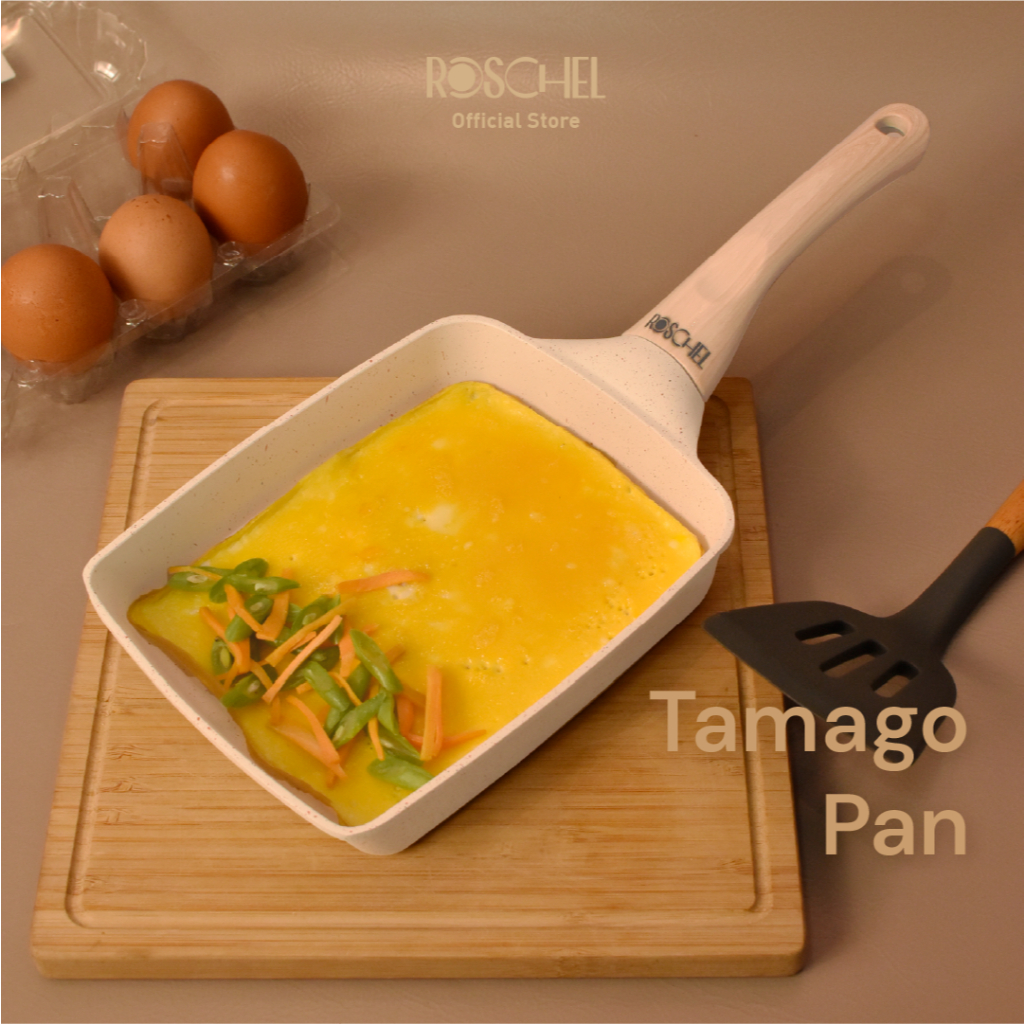 Roschel Beneta White Marble Coating Non-Stick Tamago Pan 18 cm Panci Wajan Penggorengan Telur Egg Pan Tamagoyaki Omelet