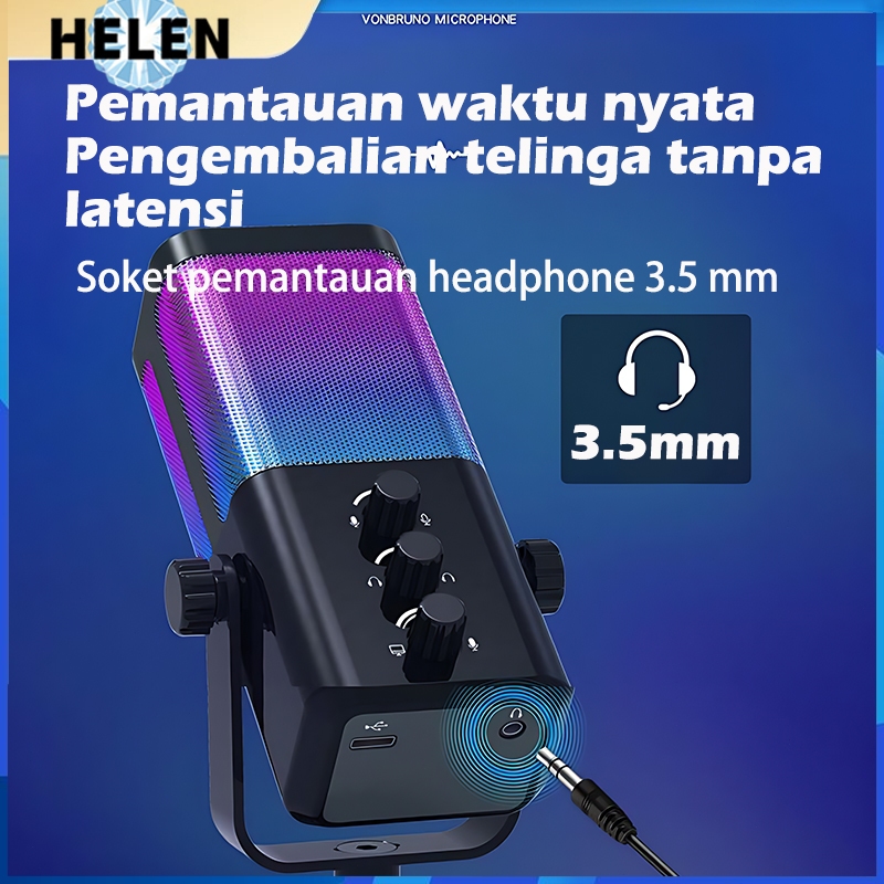 Microphone Condenser M7 RGB Tombol-Tombol Terpisah Mikrofon Dynamic USB Type-C for PC Laptop Live Streaming Gaming Recor