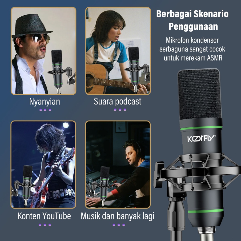 mic condenser Koorfly U87PRO Ori 48V mikrofon kondensor Kit mikrofon rekaman langsung dengan shock mount
