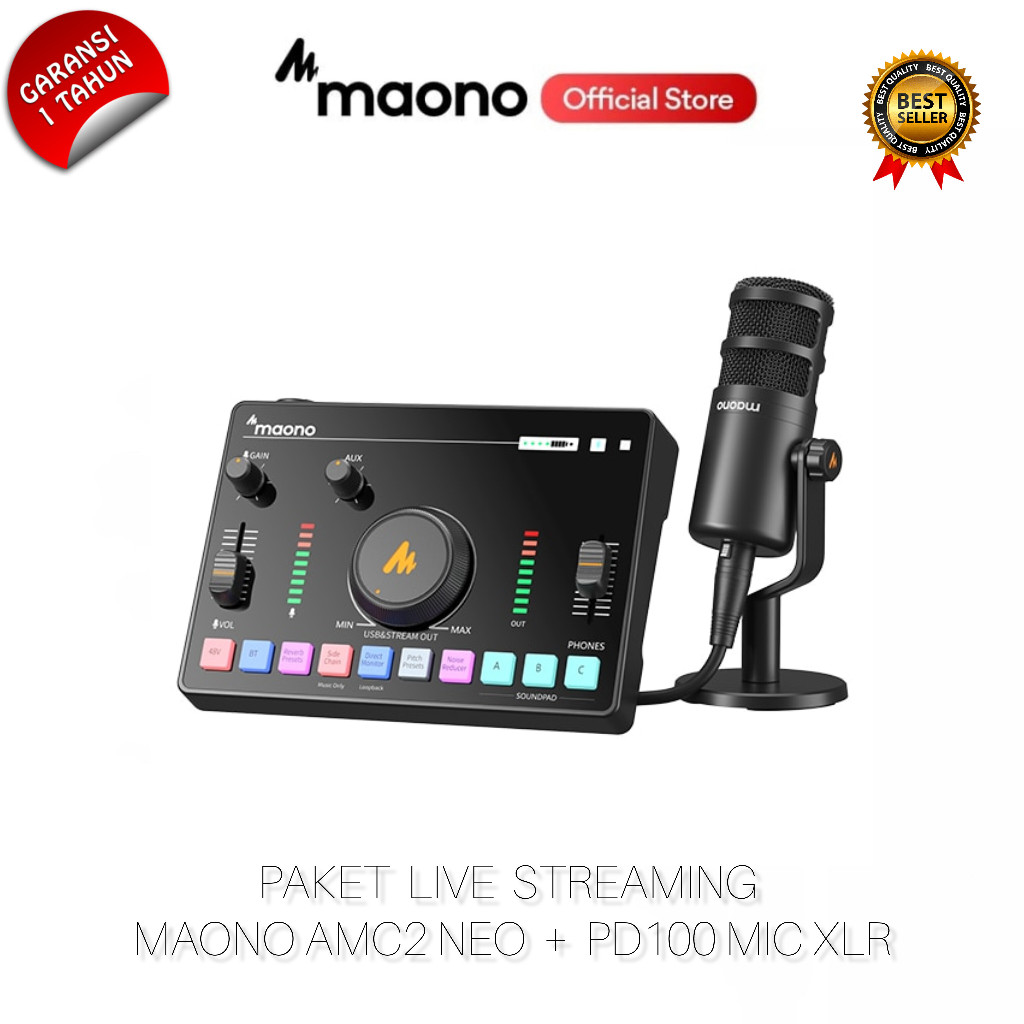 MAONO AMC2 Paket PD100 Microphone Dynamic for Podcast Live Streaming Gaming Recording Smartphone Hp