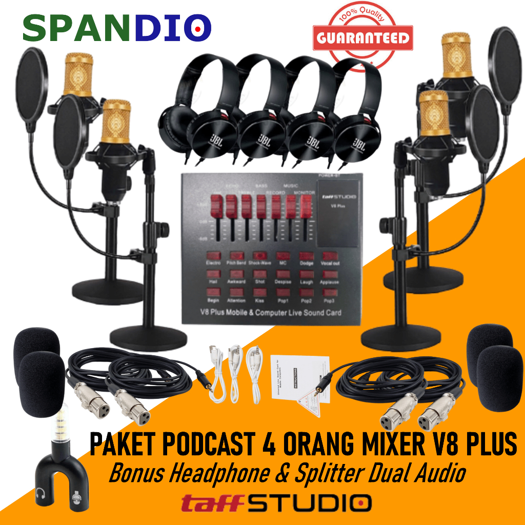 PAKET PODCAST 4 Orang Mic Microphone Bm Mixer V8s V8 Plus Lengkap