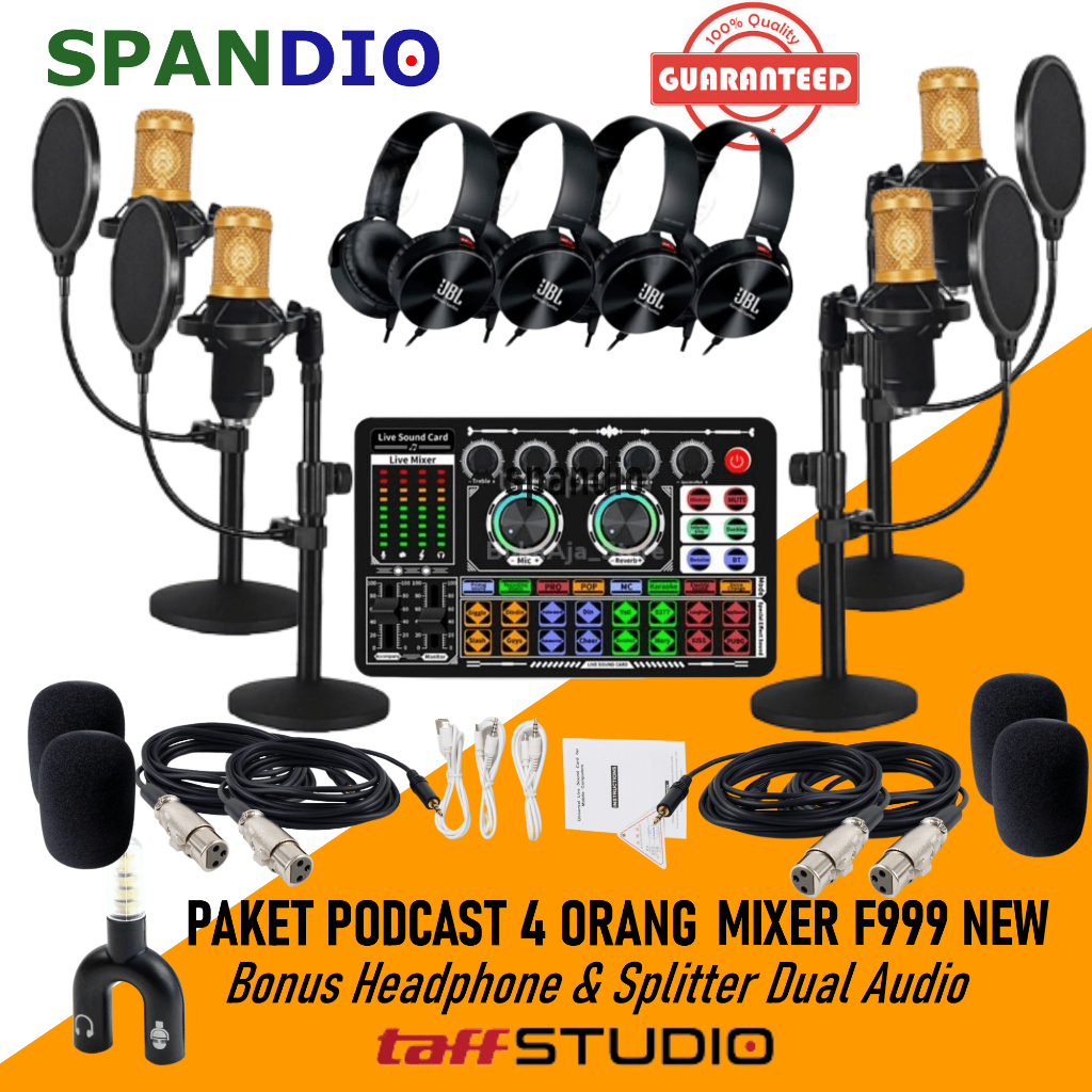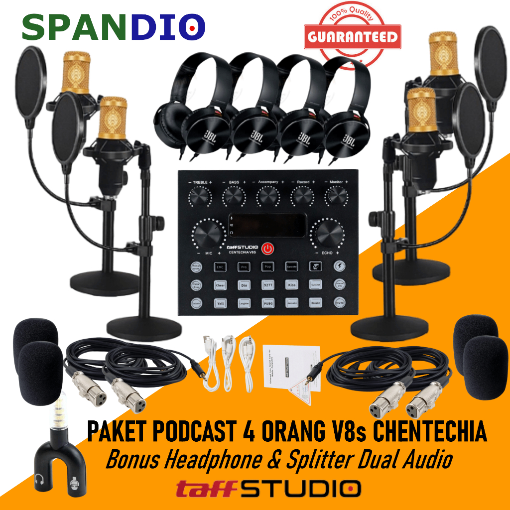 PAKET PODCAST 4 Orang Mic Microphone Bm Mixer V8s V8 Plus Lengkap