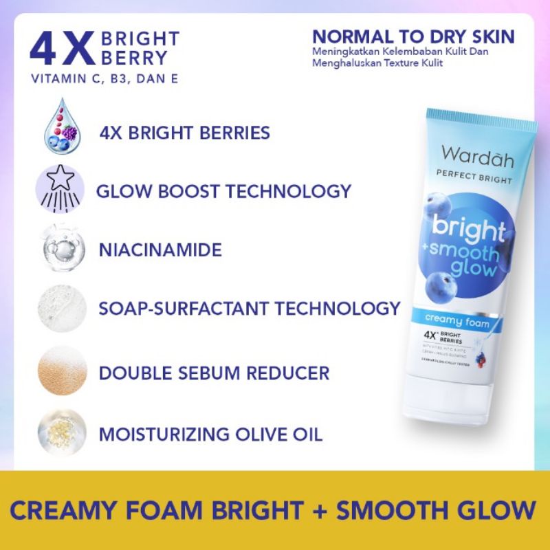 Wardah Perfect Bright Normal Skin Creamy Foam +oil control +smooth glow 50&100ml