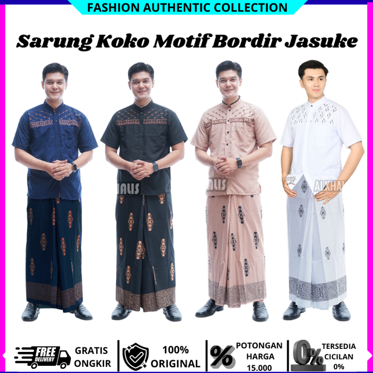 [Star] Baju Koko Pria Dewasa Setelan SARKO Sarung Dan Baju Koko Muslim Pria Lengan Pendek Motif Bordir Jasuke Sarung