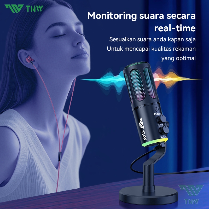 TNW K18 Microphone Condenser USB Type-C Mikrofon with RGB Dynamic Mic for PC Laptop Live Streaming Gaming Recording
