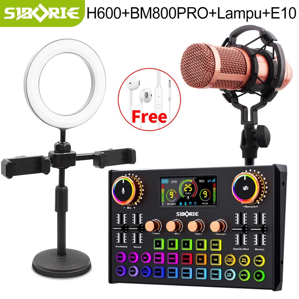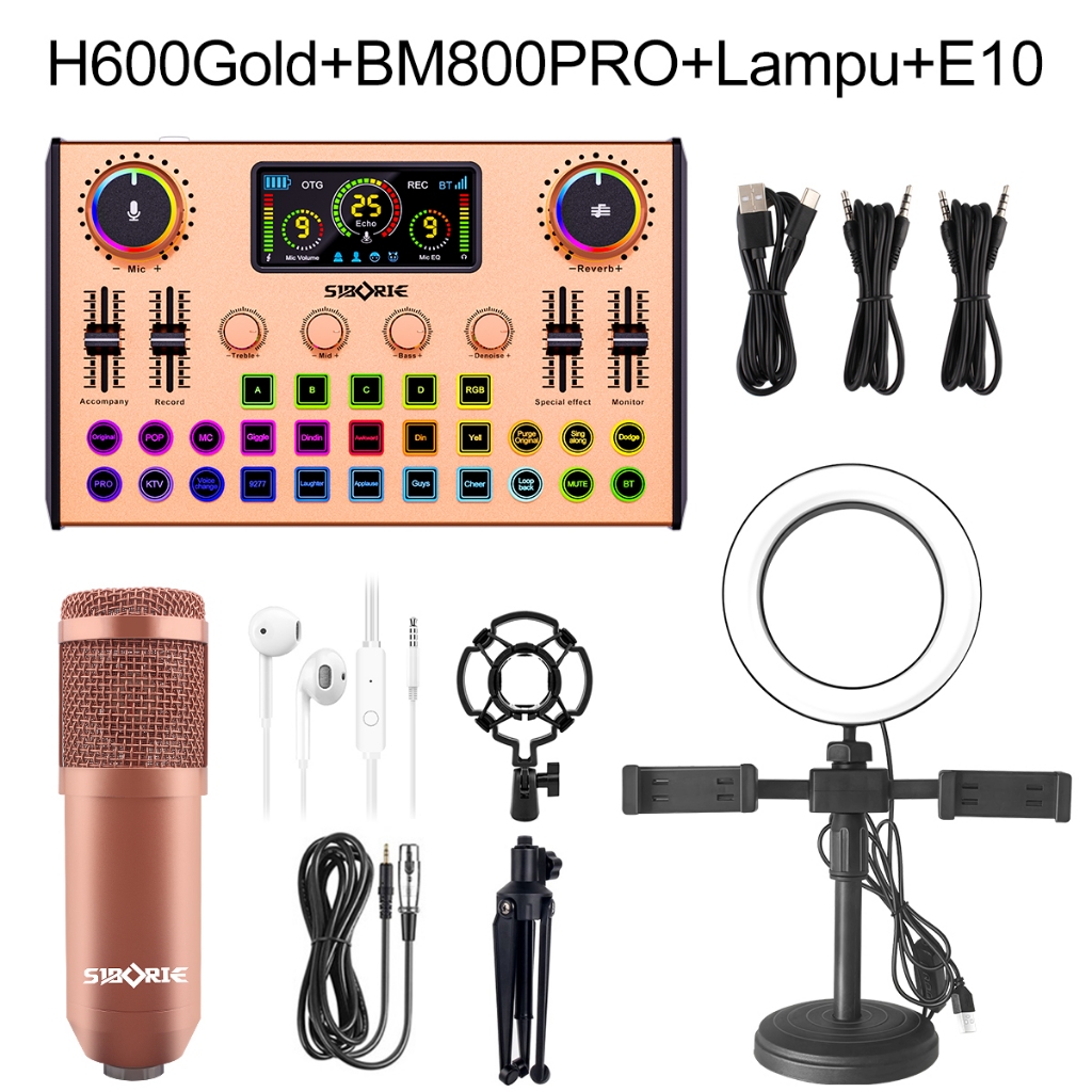 Siborie【Free Headset】Siap H600+BM800PRO+Lampu Set Soundcard Mic Paket Lengkap Pengiriman Cepat Satu Set Dudukan Lengkap