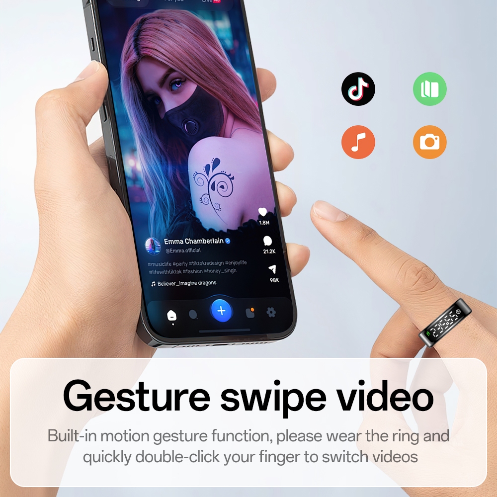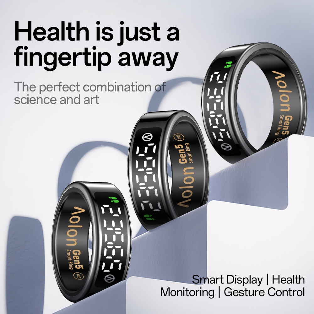 Aolon Smart Ring Gen 5 Layar Led Tampilan Waktu Remote Control Musik Video Pemantauan Kesehatan Otomatis