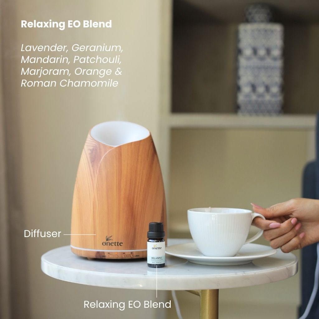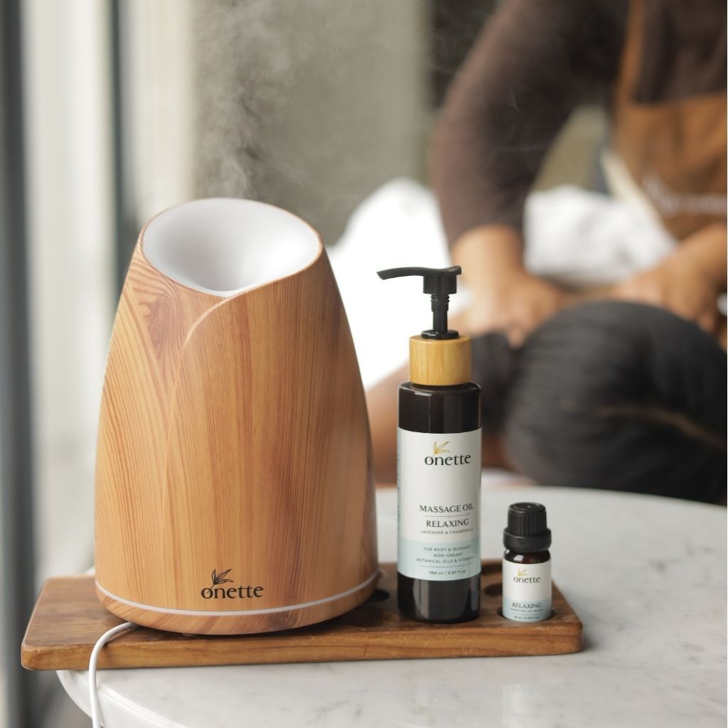 Onette Aromatherapy Wooden Diffuser 500 ml & Essential Oil Set, Difuser Aromaterapi & Minyak Atsiri Murni - Lavender, Le