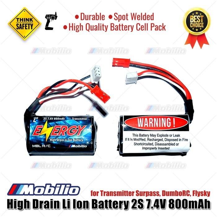 Baterai High Drain Li Ion Battery 2S 7.4V 800mAh for RC Remote Surpass DumboRC Flysky Transmitter