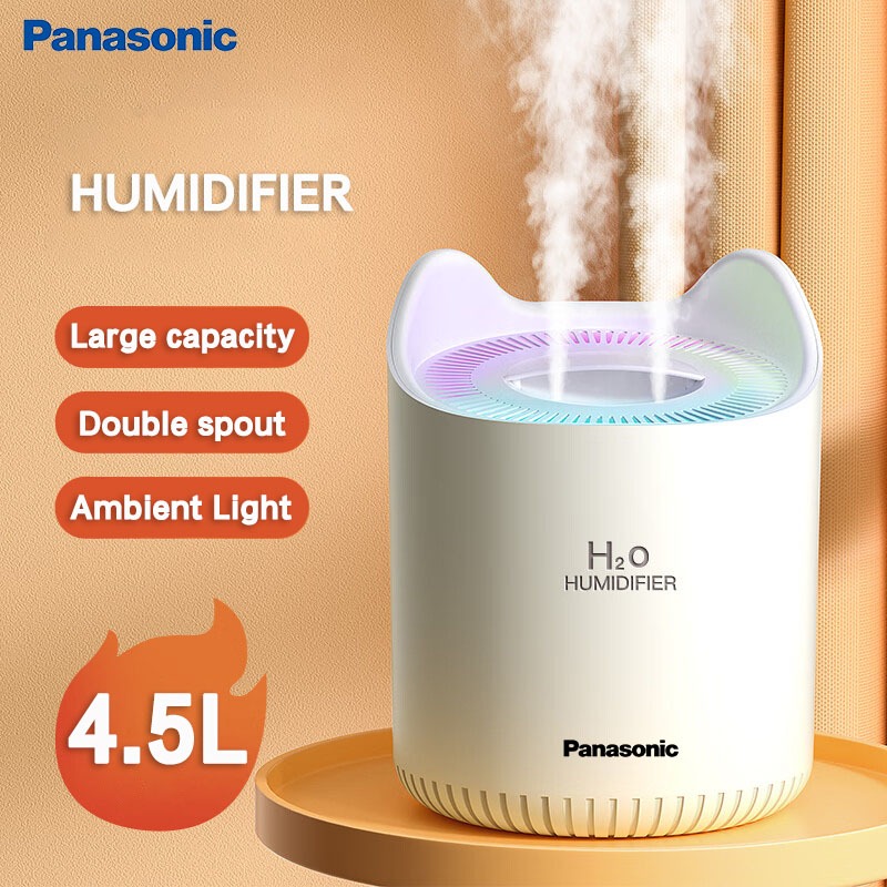 Panasonic USB Dual-Nozzle 4.5L Air Humidifier LED Atmosphere Night Light Home Bedroom Desk Humidifier Ultrasonic Cold Fo