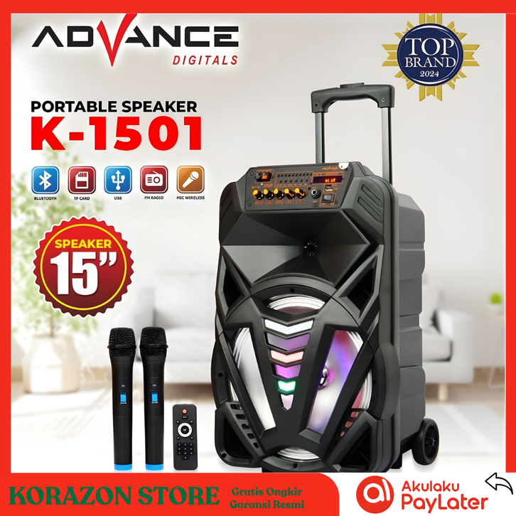 SPEAKER AKTIF BLUETOOTH ADVANCE K-1501N K-1506 Portable 15 Inch Free 2 Bh Mic Wireless