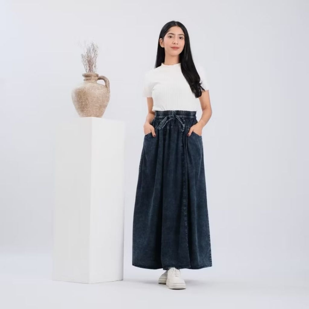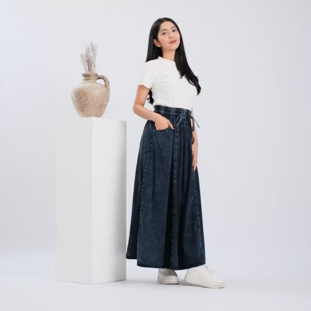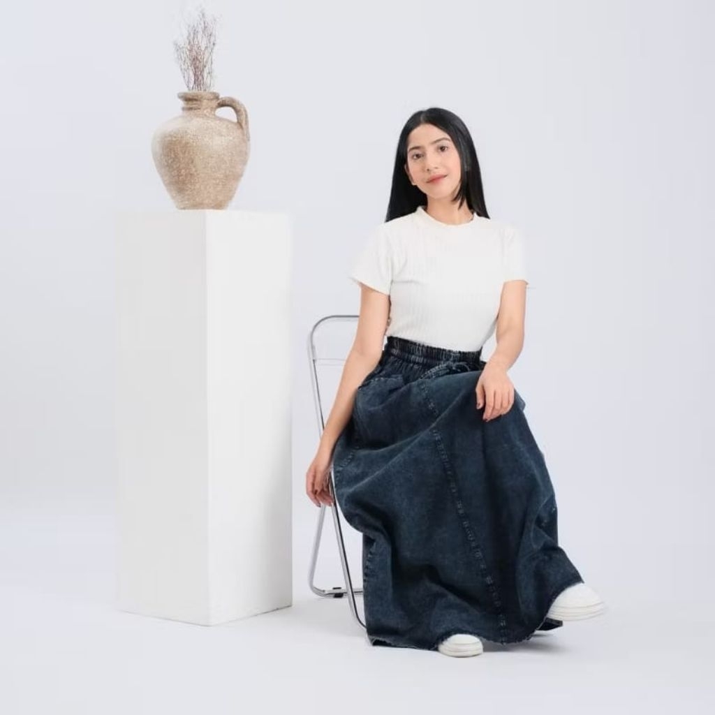 Rok Jeans Payung Super Jumbo All Size Full Karet Keliling / Rok Wanita Dewasa