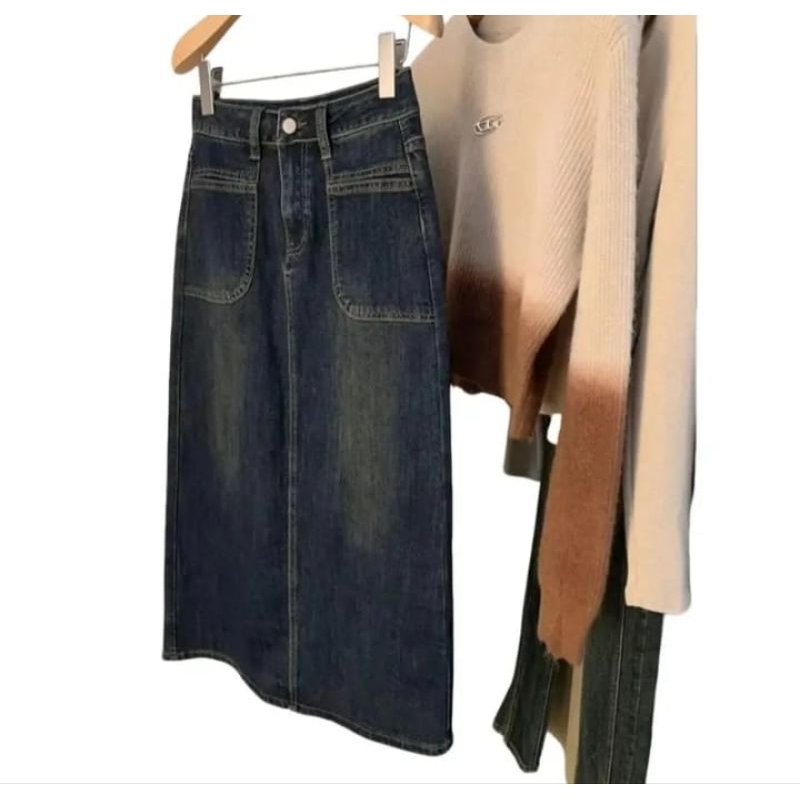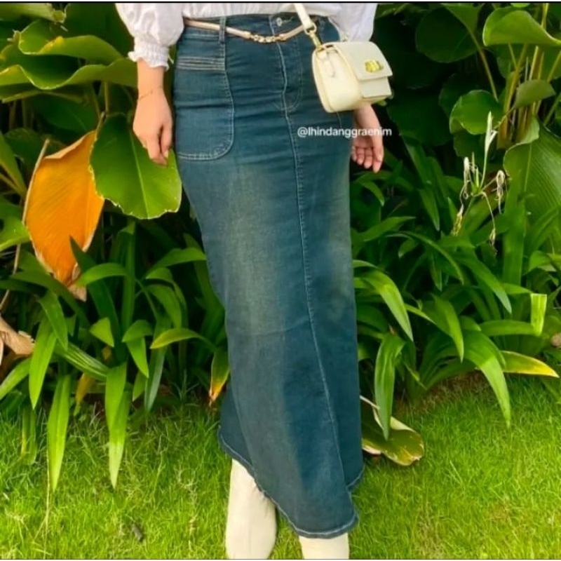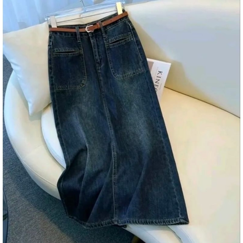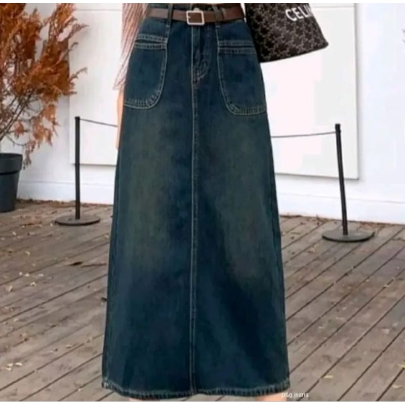 Rok Jeans Wanita Dewasa Model Chelia Skirt Panjang Denim