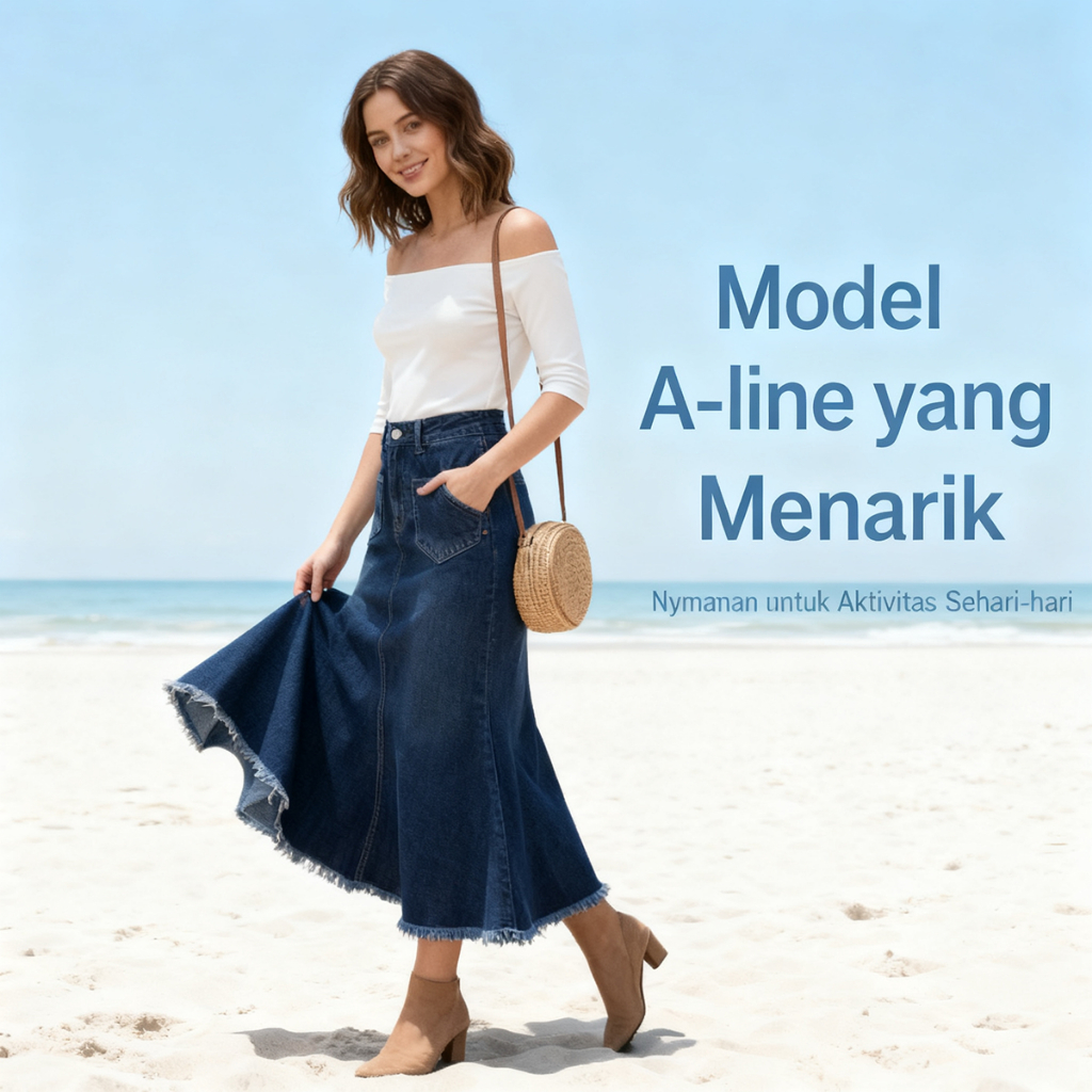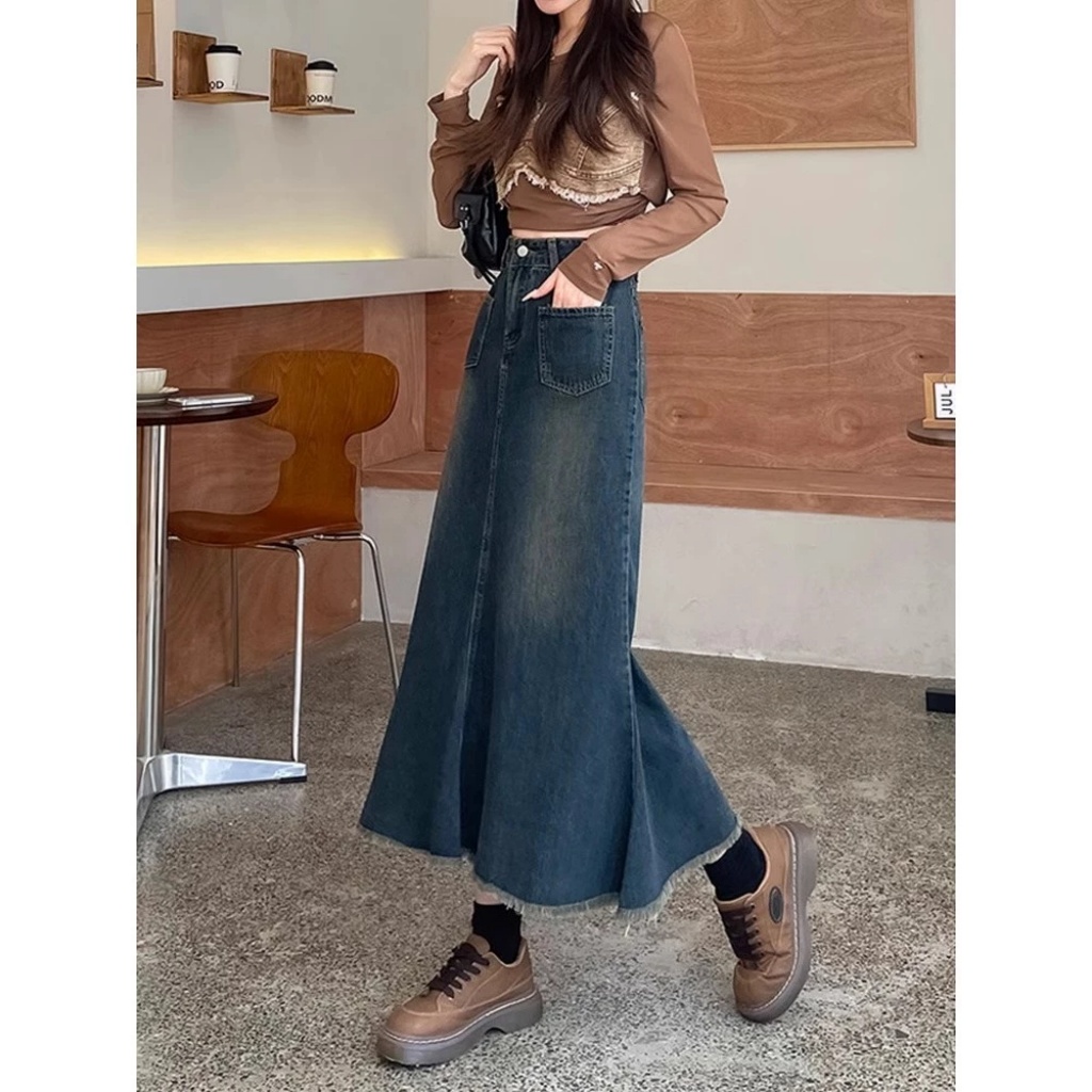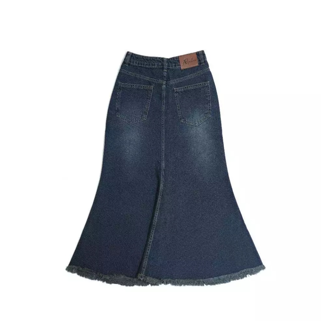Rok Jeans Mermaid Maxi Flare Wanit, Siluet Langsing, Gaya Kasual Chic 8855