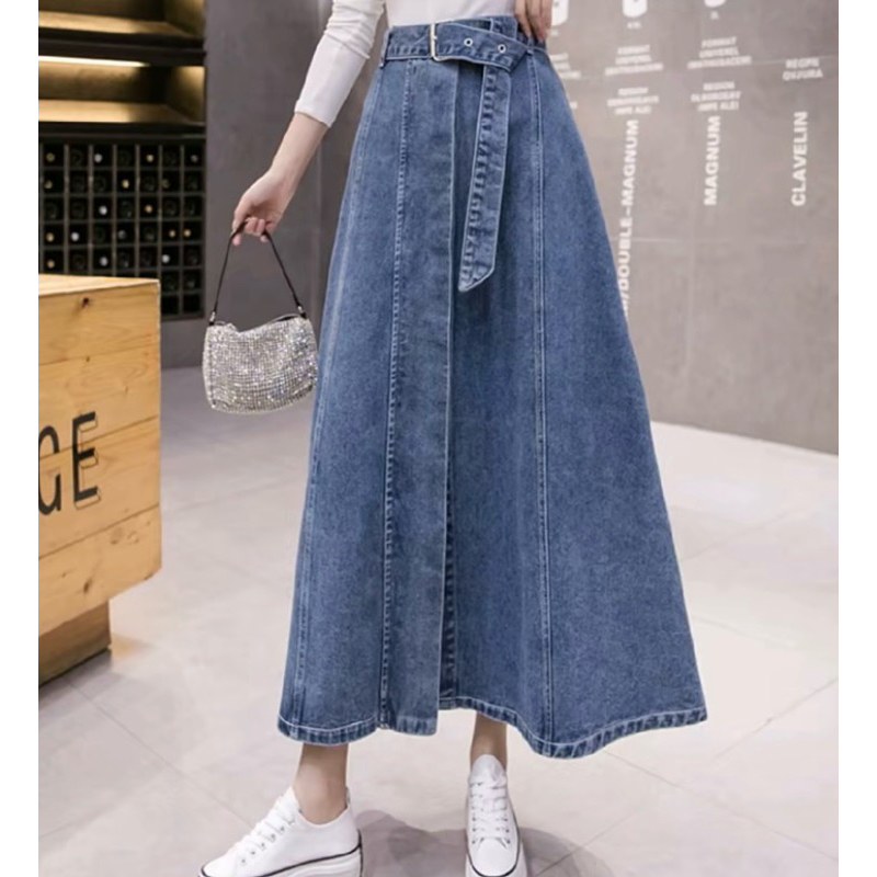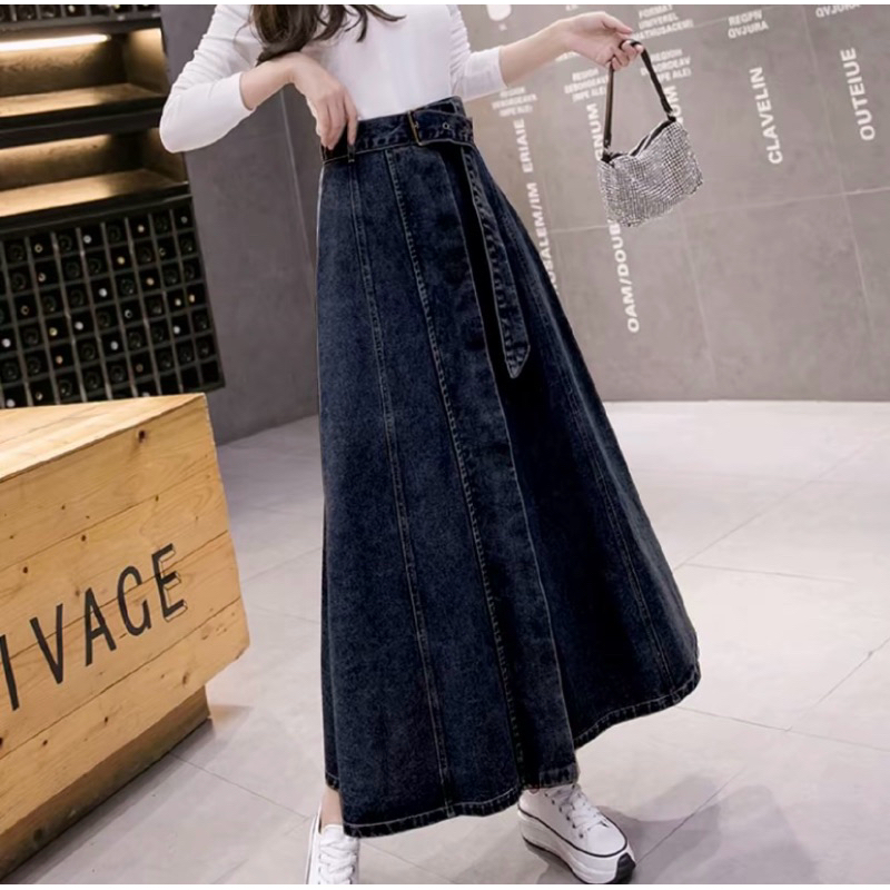 Natalie Rok Jeans Skirt Panjang Wanita Denim Tebal
