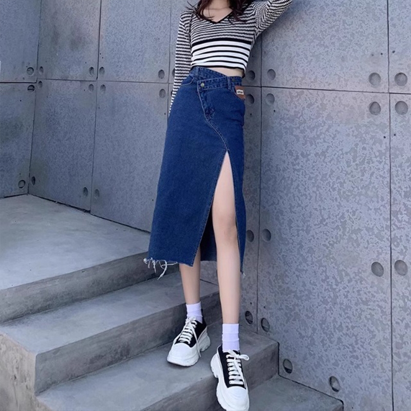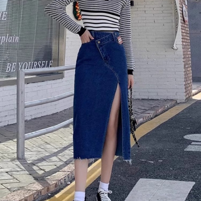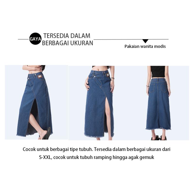 Rok Jeans Wanita Tinggi Pinggang dengan Detail Split Samping - Trendy & Nyaman untuk Setiap Harian | Rok Denim Wanita 20