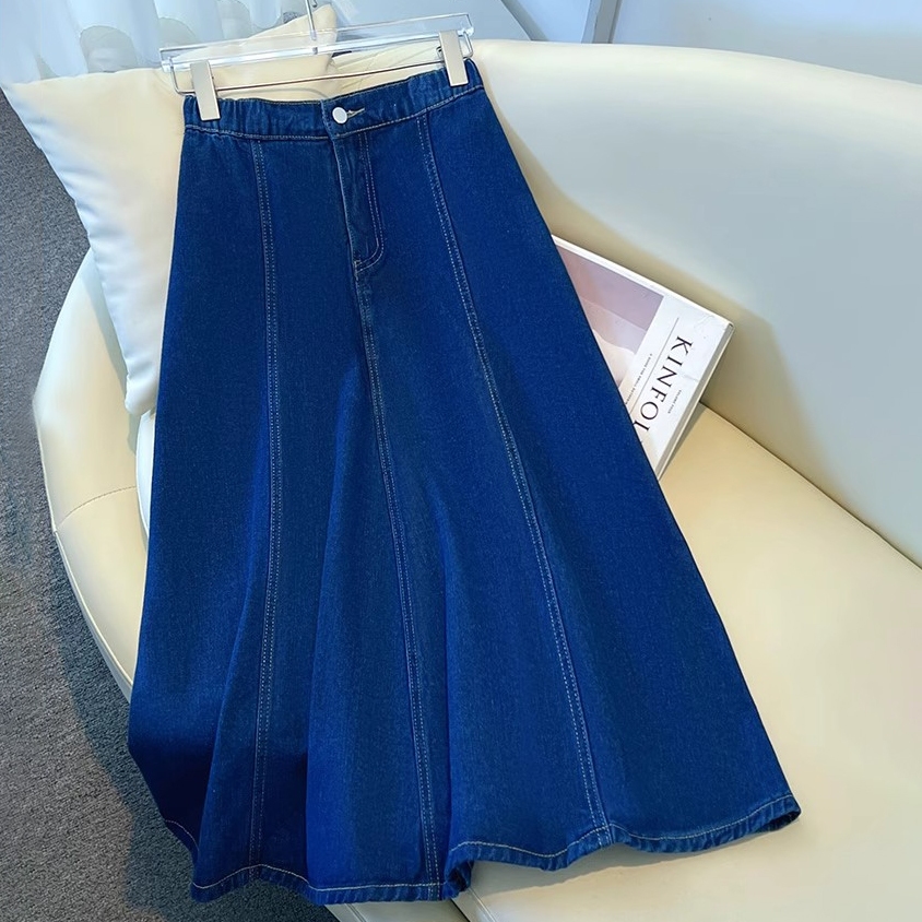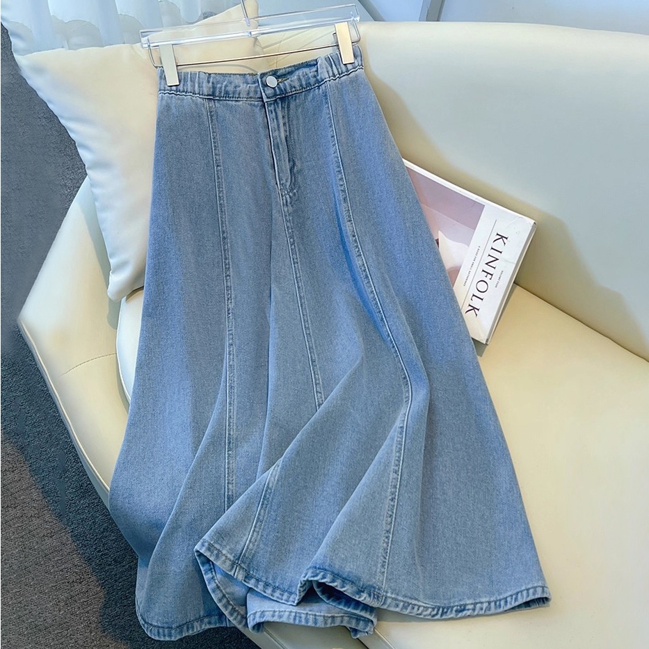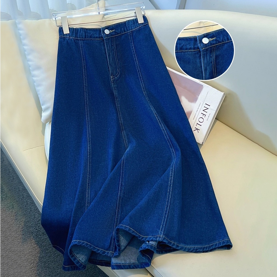 <elegan.girl> Rok Jeans Premium Korean Style Strecth Jumbo Wanita A- Line Denim Pinggang Karet