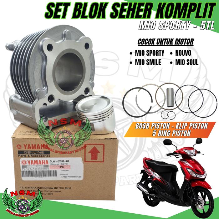 BLOK SEHER KOMPLIT+ PISTON KIT CYLINDER SET MIO SPORTY,NOUVO,MIO SMILE,MIO SOUL 5LW MESIN MOTORCYCLE HANDAL PRECISI AWET AMAN
