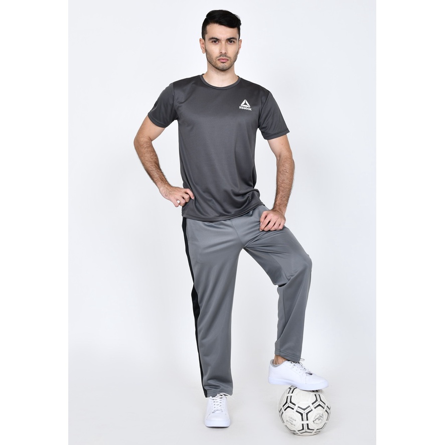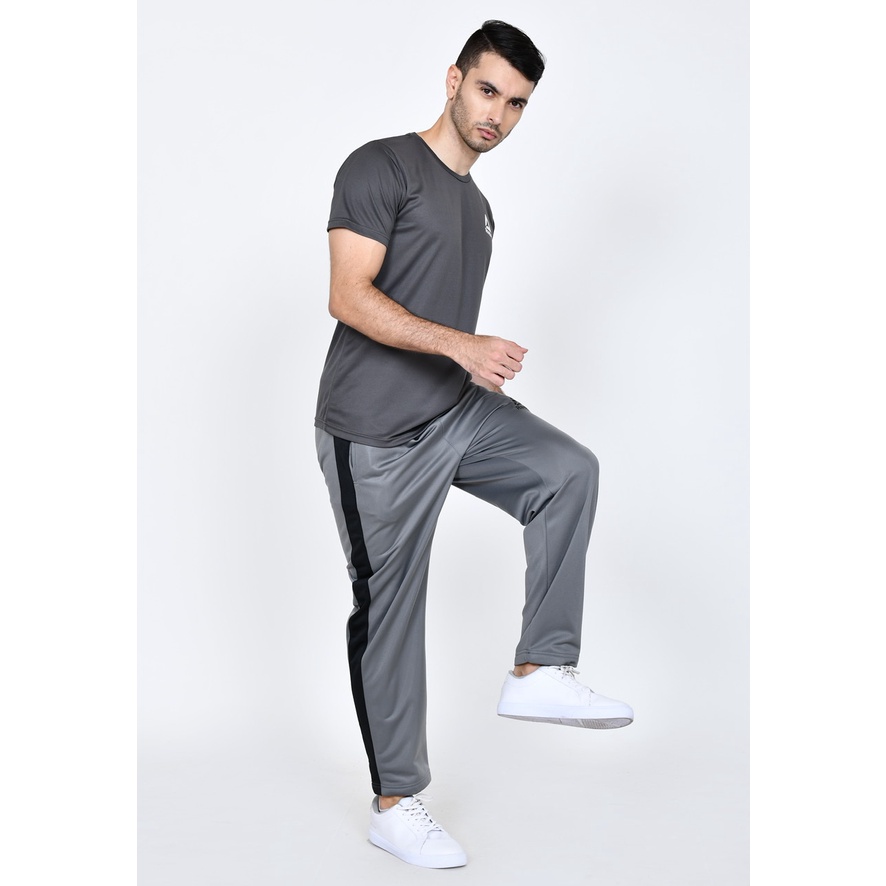 Training Pants Panjang Pria Sporty Abu Tua RB01 Strip 1 Besar