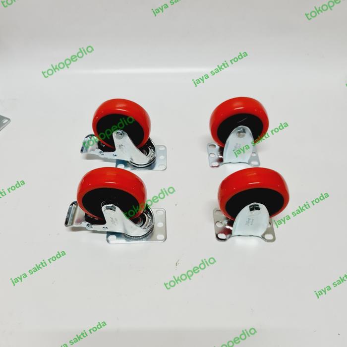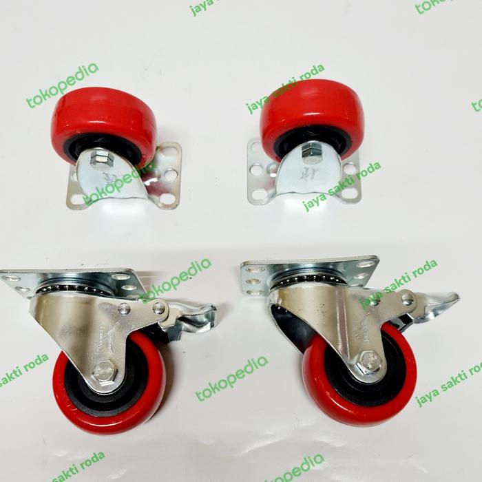 RODA TROLI GROBAK PU 3 INCH (2 PUTAR+REM 2 MATI)