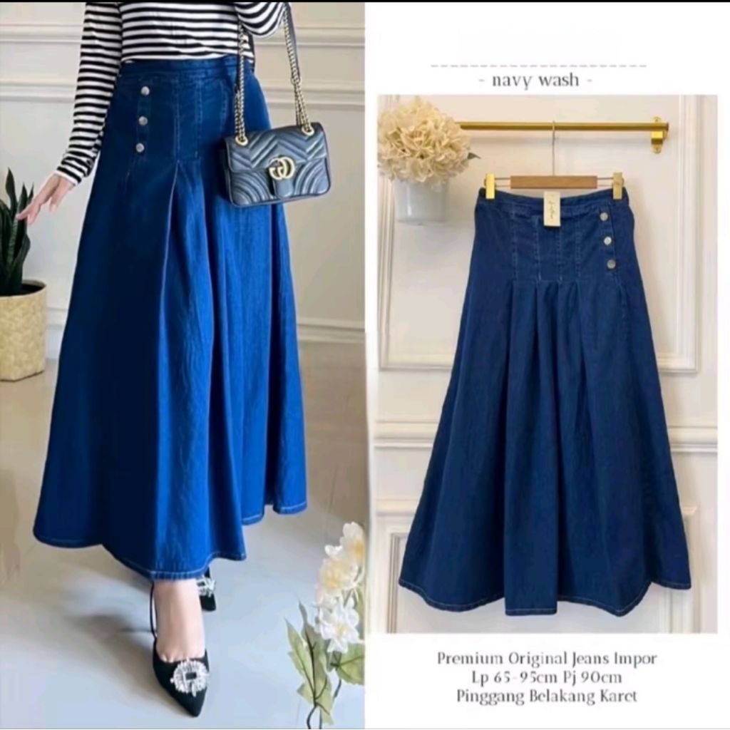 Rok Jeans Inara Korean Style Panjang Wanita Vintage