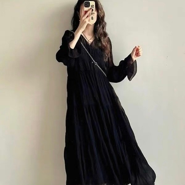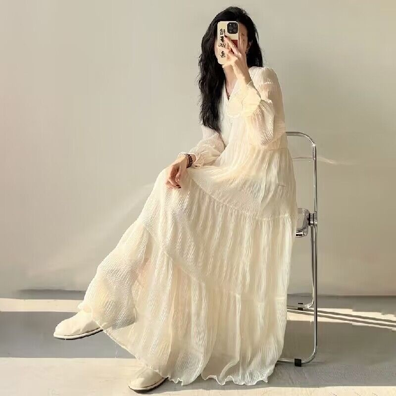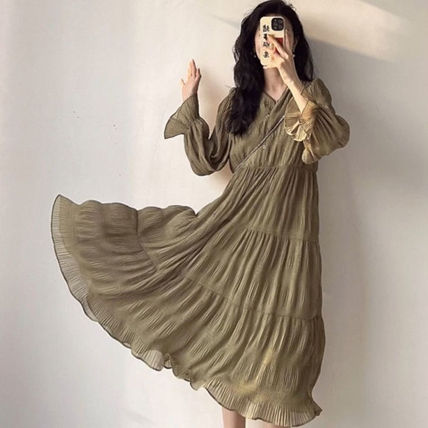 Gamis Wanita Panjang Crinkle Sifon Casual Home Dress Polos - M505