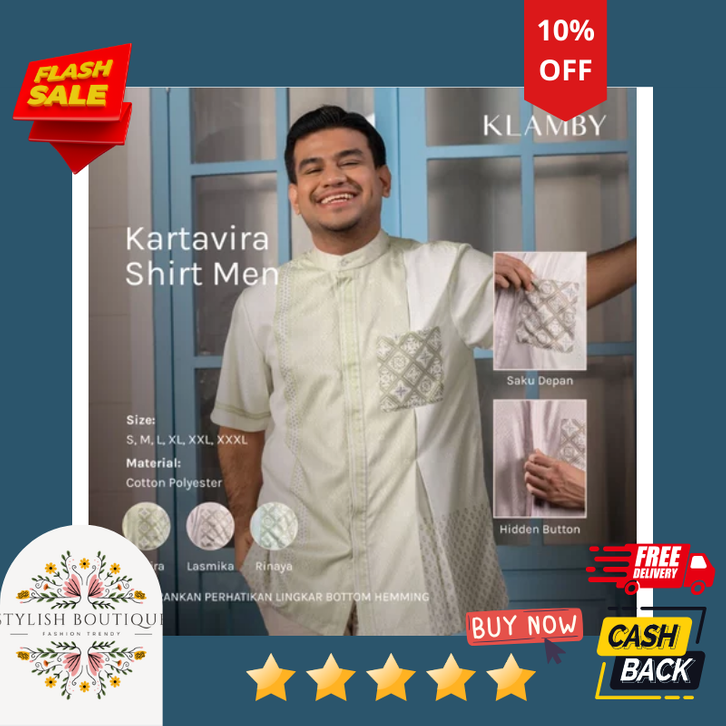 [Star] Baju Koko Klamby - Kartavira Shirt Men / Baju Atasan Klamby Pria / Baju koko Lebaran Pria / Koko Dewasa Klamby