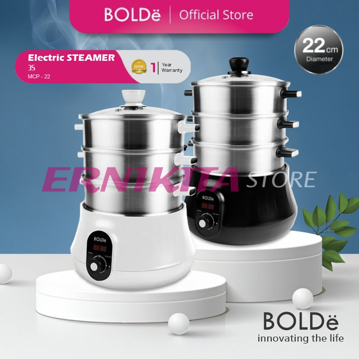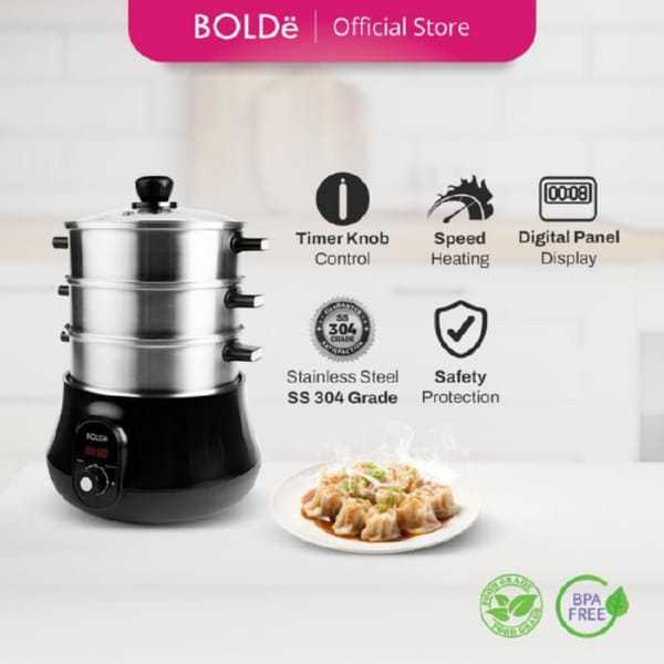 BOLDe ELECTRIC STEAMER 3S Panci Listrik 600W 2 Kukusan 1 Hotpot Tutup Kaca SUS304 Anti Karat Timer